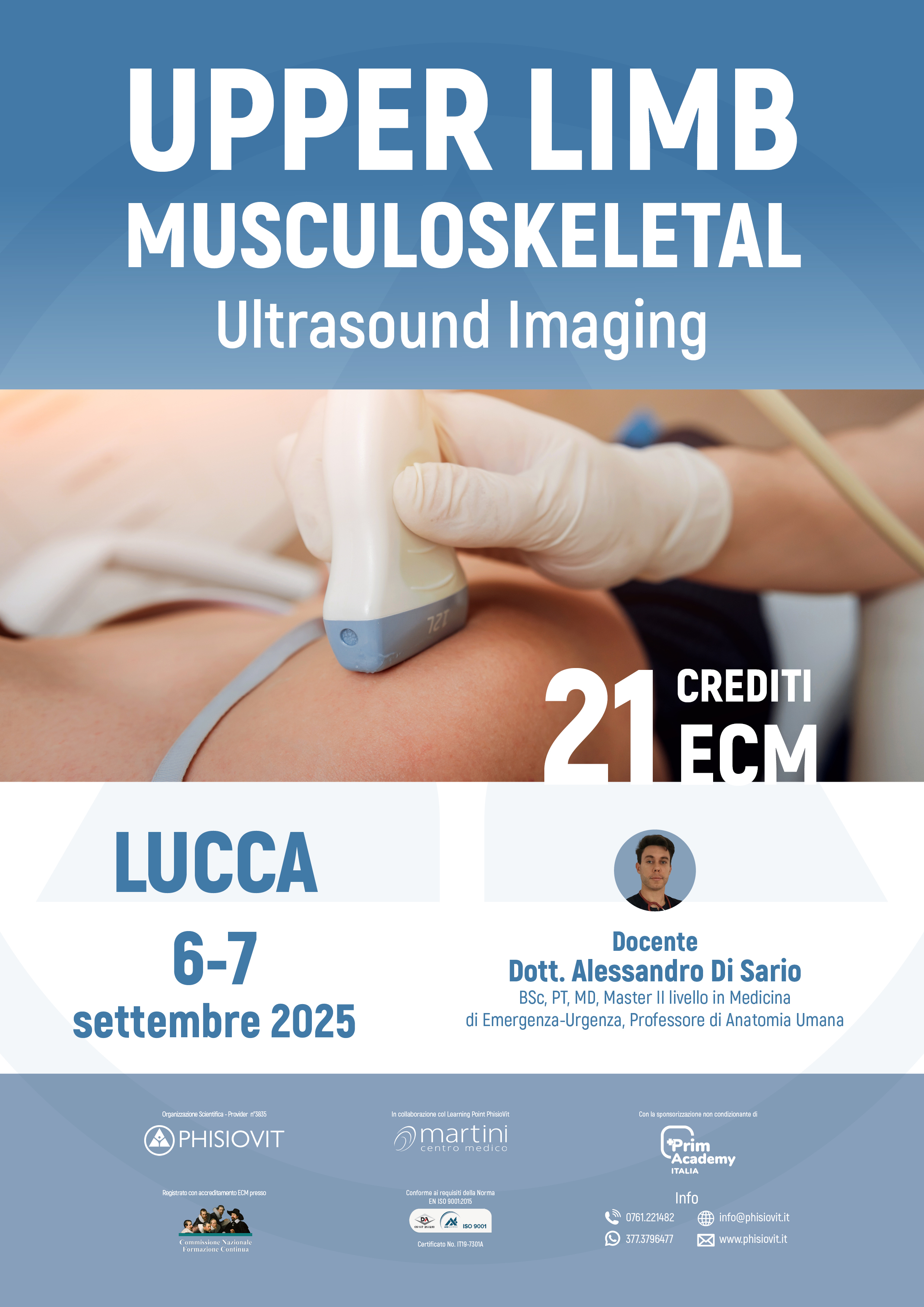 Upper Limb Musculoskeletal Ultrasound Imaging è un corso innovativo rivolto a fisioterapisti e professionisti della riabilitazione che desiderano integrare l'ecografia muscoloscheletrica nella pratica clinica quotidiana. L'evoluzione della figura del fisioterapista, sempre più orientata all'evidenza scientifica, richiede strumenti affidabili e specifici per ottimizzare la valutazione clinica e personalizzare i trattamenti. Questo corso offre un approccio pratico e all'uso dell'ecografia muscoloscheletrica per l'analisi delle strutture osteo-articolari e muscolo-tendinee degli arti superiori. I partecipanti avranno l'opportunità di apprendere in un contesto altamente operativo, alternandosi nei ruoli di operatori e pazienti. L'ecografia, grazie alla sua capacità di fornire immagini ad alta risoluzione in tempo reale, rappresenta un valore aggiunto significativo nella pratica riabilitativa, migliorando l'accuratezza delle valutazioni, il monitoraggio dei progressi terapeutici e la comunicazione con i pazienti. Il corso include anche sessioni specifiche dedicate allo screening for referral, ovvero l'identificazione di segni e sintomi che potrebbero indicare patologie non muscoloscheletriche o condizioni che richiedono un approfondimento medico specialistico. Questo aspetto è fondamentale per garantire la sicurezza del paziente, garantire un tempestivo invio a valutazione medica specialistica, migliorare l'appropriatezza dell'intervento riabilitativo ed evitare ritardi diagnostici in caso di patologie sottostanti più gravi. Verranno illustrati i segni ecografici di sospetto e fornite competenze per riconoscere precocemente condizioni critiche, facilitando un rapido invio a valutazioni specialistiche. Il corso non ha l'obiettivo di formare i partecipanti alla diagnosi medica, ma di fornire strumenti per integrare l'ecografia nella valutazione funzionale e riabilitativa, in stretta collaborazione con il team medico.
