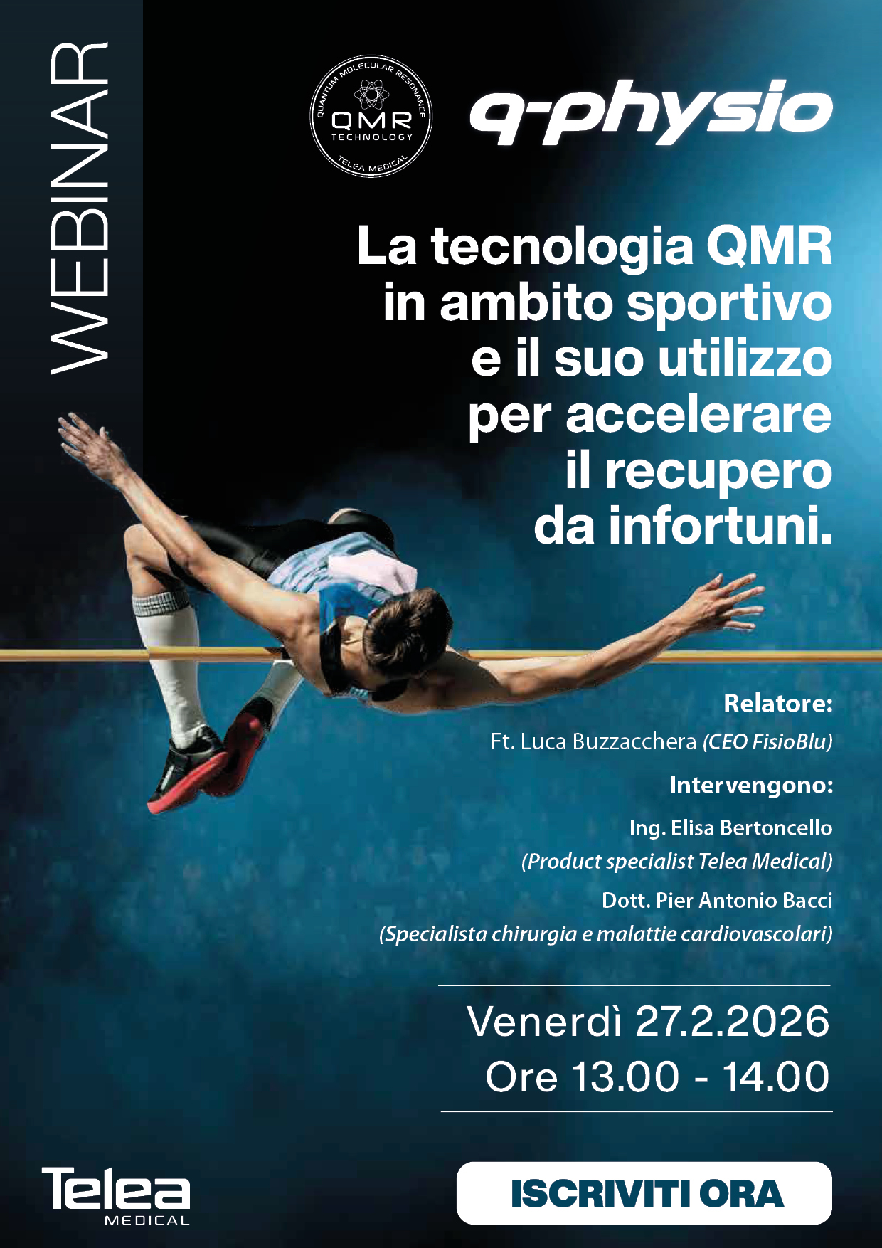 Il corso “La tecnologia QMR in ambito sportivo e suo utilizzo per accelerare il recupero da infortuni” ha l’obiettivo di fornire ai partecipanti competenze pratiche sull’impiego della tecnologia QMR nella gestione del recupero degli atleti. Durante l’evento saranno presentati casi clinici reali e protocolli applicativi specifici per infortuni muscolo-tendinei e articolari, con particolare attenzione alla fase acuta e cronica. L’approccio sarà interattivo e operativo, permettendo ai partecipanti di acquisire strumenti concreti e immediatamente applicabili nella pratica fisioterapica sportiva.
