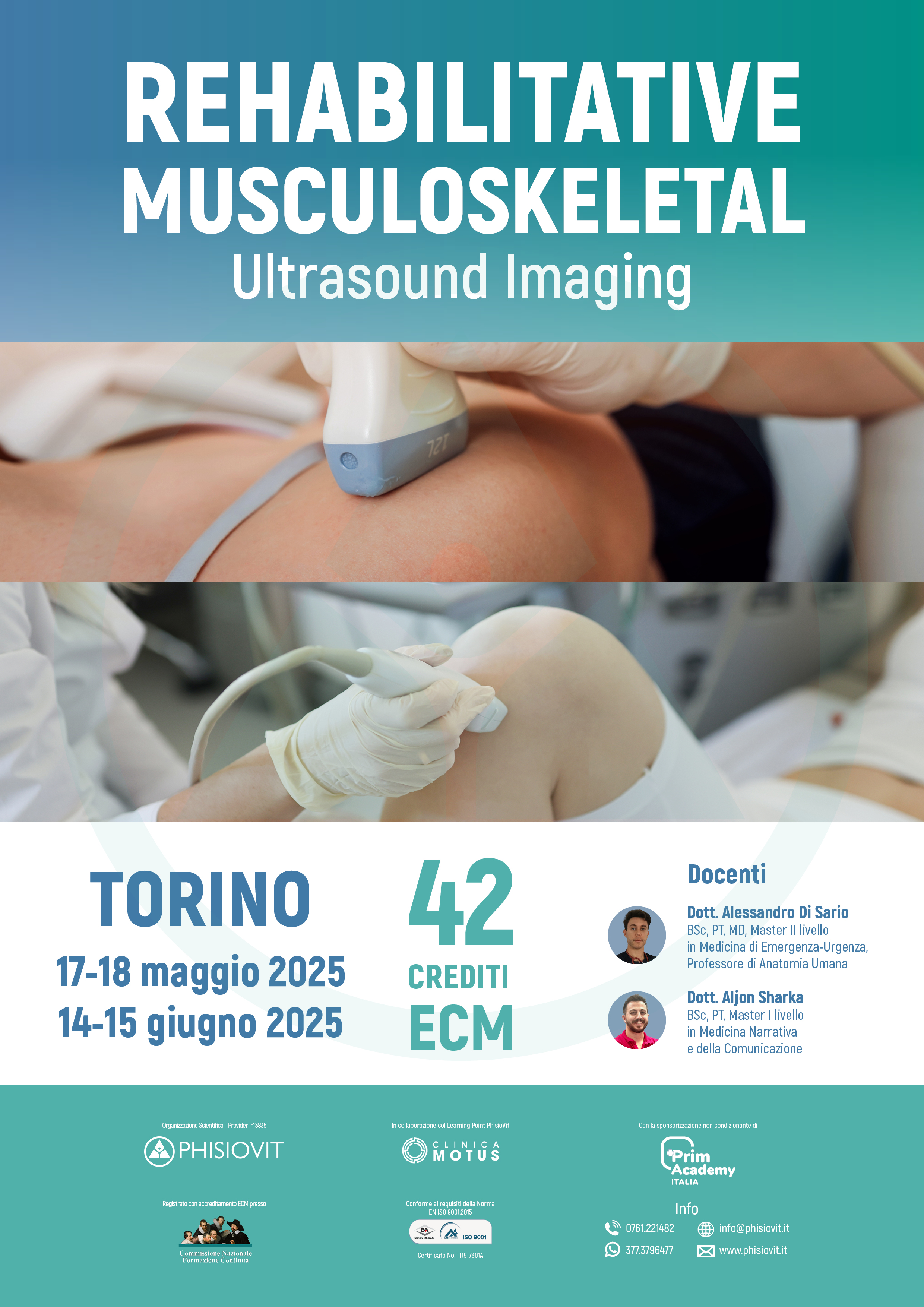 • Upper Limb Musculoskeletal Ultrasound Imaging, 21 crediti ECM, Torino, 17-18 maggio 2025