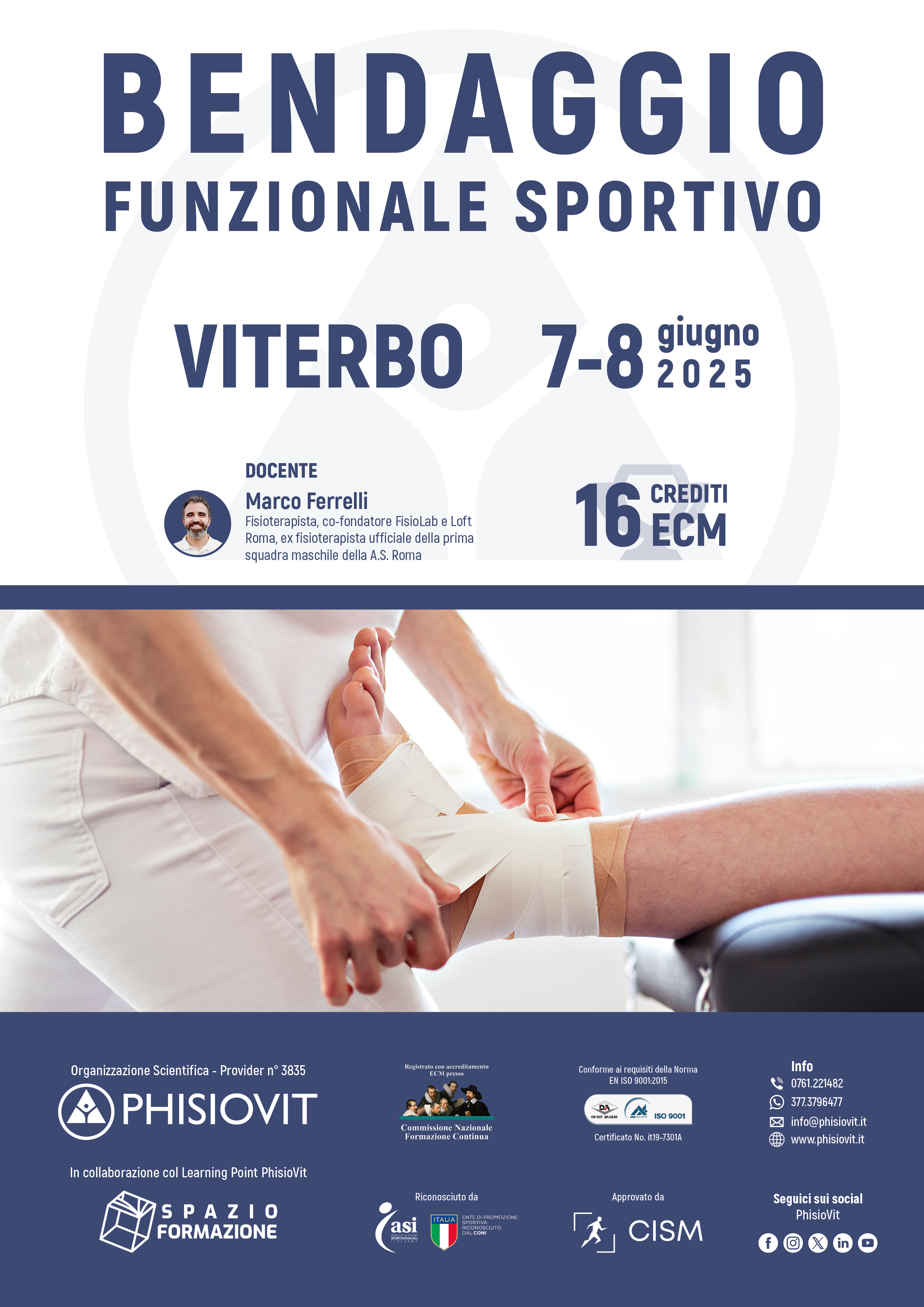 Durante il corso vengono descritte tutte le tecniche maggiormente utilizzate nella pratica clinica, con particolare attenzione alla struttura anatomica e alla fisiologia articolare. Il confezionamento di un buon bendaggio funzionale prevede l'utilizzo di diversi materiali combinati tra loro; la sovrapposizione di bende elastiche e anelastiche permette di proteggere le strutture più vulnerabili senza limitare completamente la loro funzionalità. Per questo motivo, trova applicazione in molte situazioni cliniche.