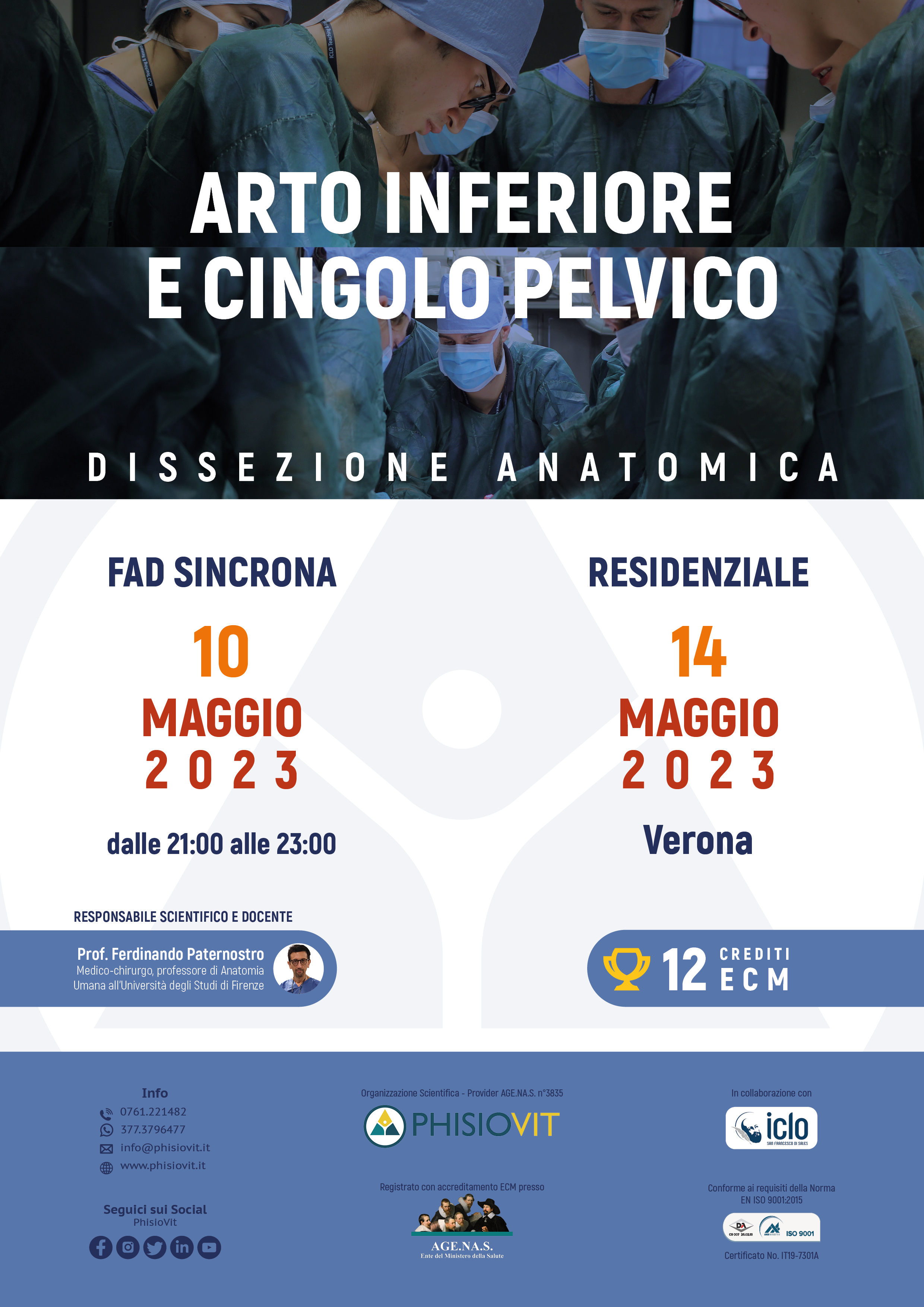 È indubbio che oggigiorno il professionista sanitario debba possedere una solida conoscenza anatomica dell'apparato muscoloscheletrico, al fine di saper orientare con maggiore cura e precisione il suo atto terapeutico. In questo corso, partendo dall'anatomia di superficie, passando per quella topografica e attraverso la dissezione su cadavere sotto la guida del proprio tutor, si evidenziano le diverse strutture con la possibilità per il partecipante di saggiarle e palparle (hands-on) al fine di comprenderne ubicazione, forma, rapporti e avere così una migliore percezione della tridimensionalità del corpo umano. I discenti possono effettuare differenti manovre e tecniche sul pezzo anatomico, palpandolo, evidenziando così la risposta articolare, muscolare e biomeccanica delle strutture coinvolte. In questo corso viene effettuata la dissezione del cingolo pelvico, dell'arto inferiore e della sua parte libera col preciso fine di evidenziare le strutture posteriori e quelle anteriori.