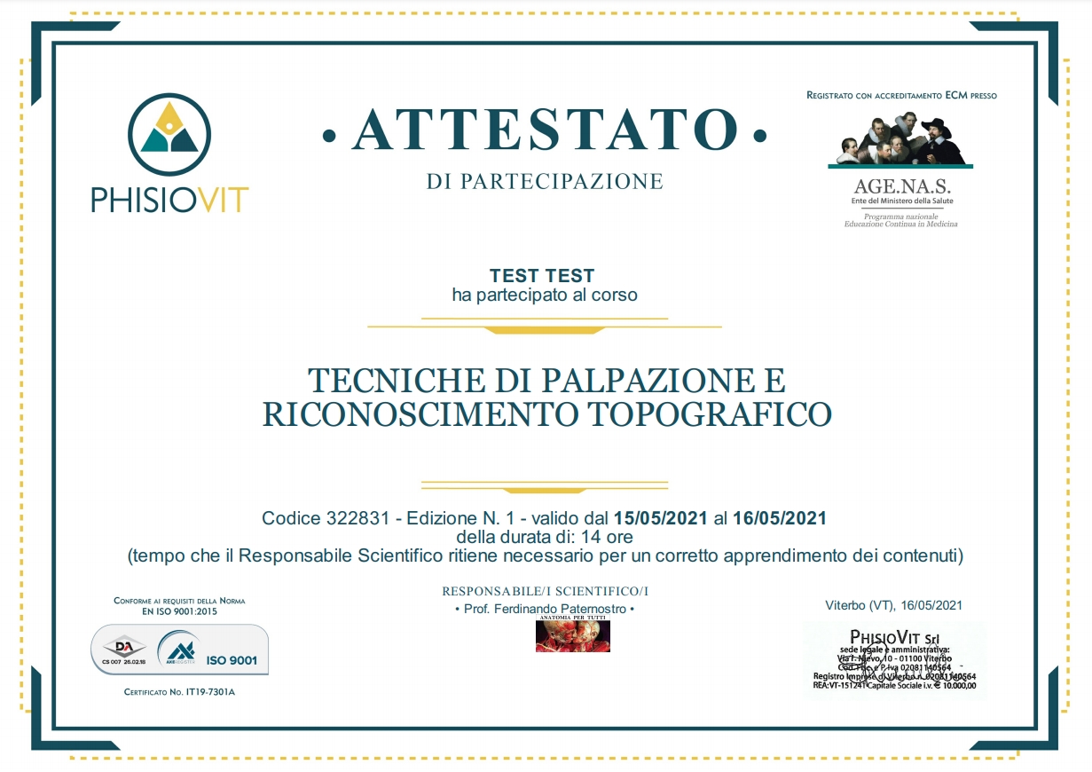 • Attestato di partecipazione conforme EN:ISO 9001:2015 (guarda qui l'attestato che riceverai al termine del corso)