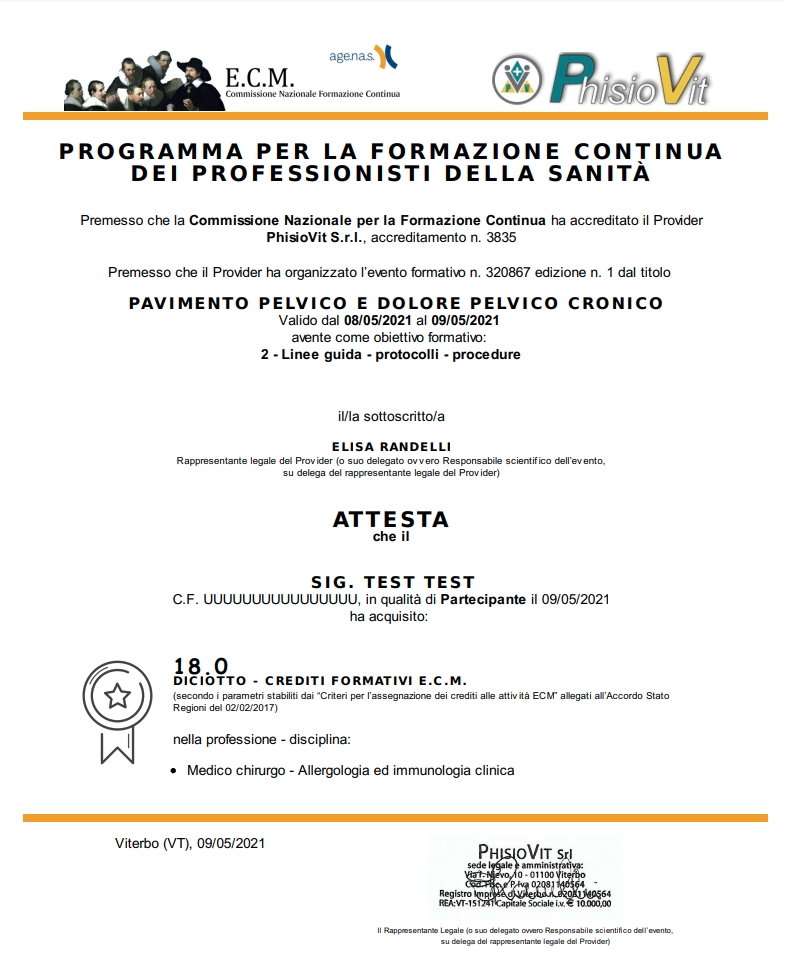 • Certificato dei 18 Crediti ECM ottenuti al superamento del questionario (*2) (guarda qui il certificato ECM che riceverai al superamento del quiz)