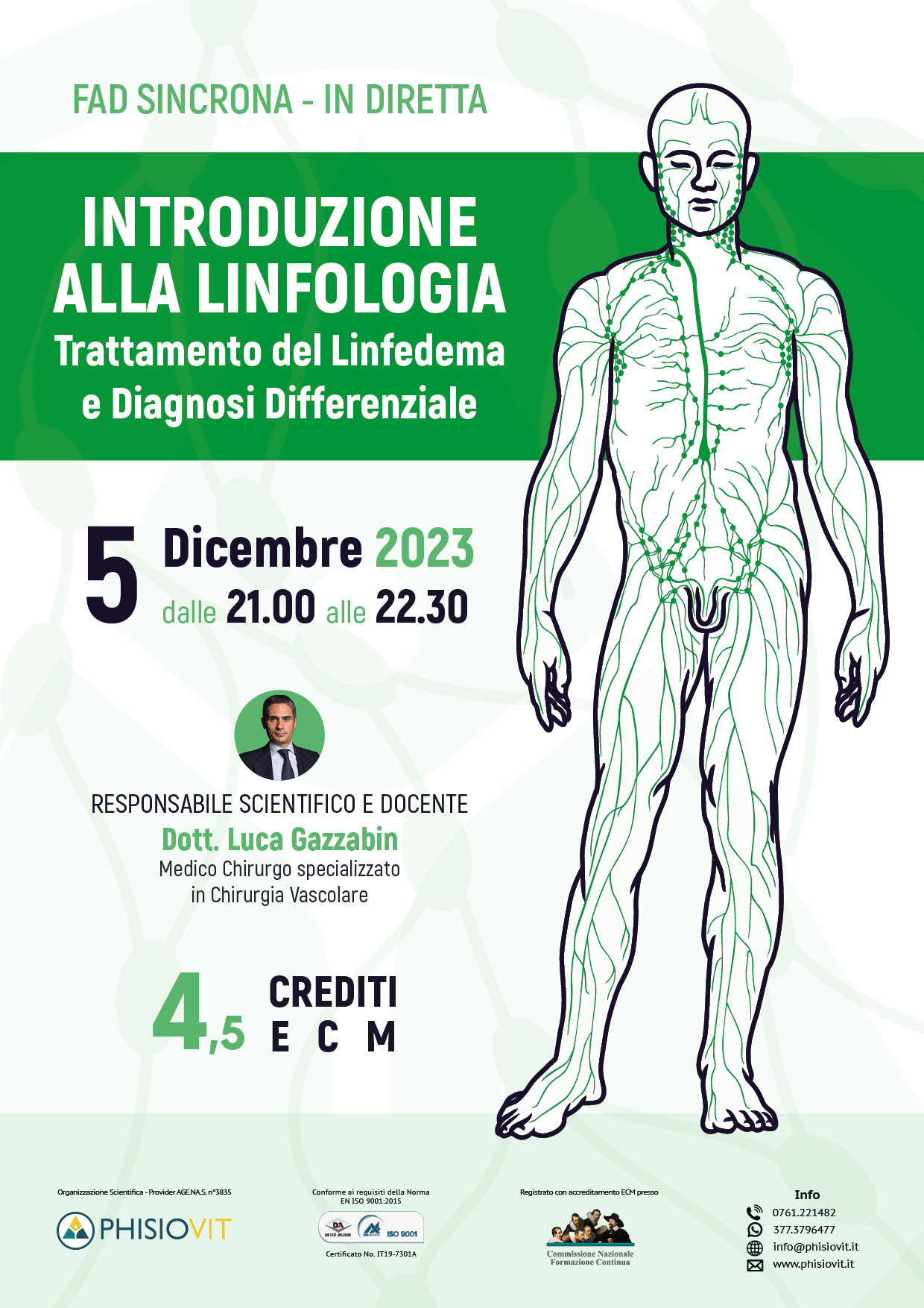 Il corso si svolge in modalità FAD sincrona in un'aula virtuale con l'organizzazione di PhisioVit, un docente che impartisce le lezioni in lingua italiana ed un massimo di mille partecipanti. Le lezioni appartenenti al programma sono organizzate secondo il seguente calendario didattico: martedì 5 dicembre 2023 dalle 21.00 alle 22.30 in aula plenaria virtuale. A seguito dell'iscrizione a questo evento on line, si riceve il link per accedere nel giorno ed all'orario prestabilito all'aula didattica virtuale.