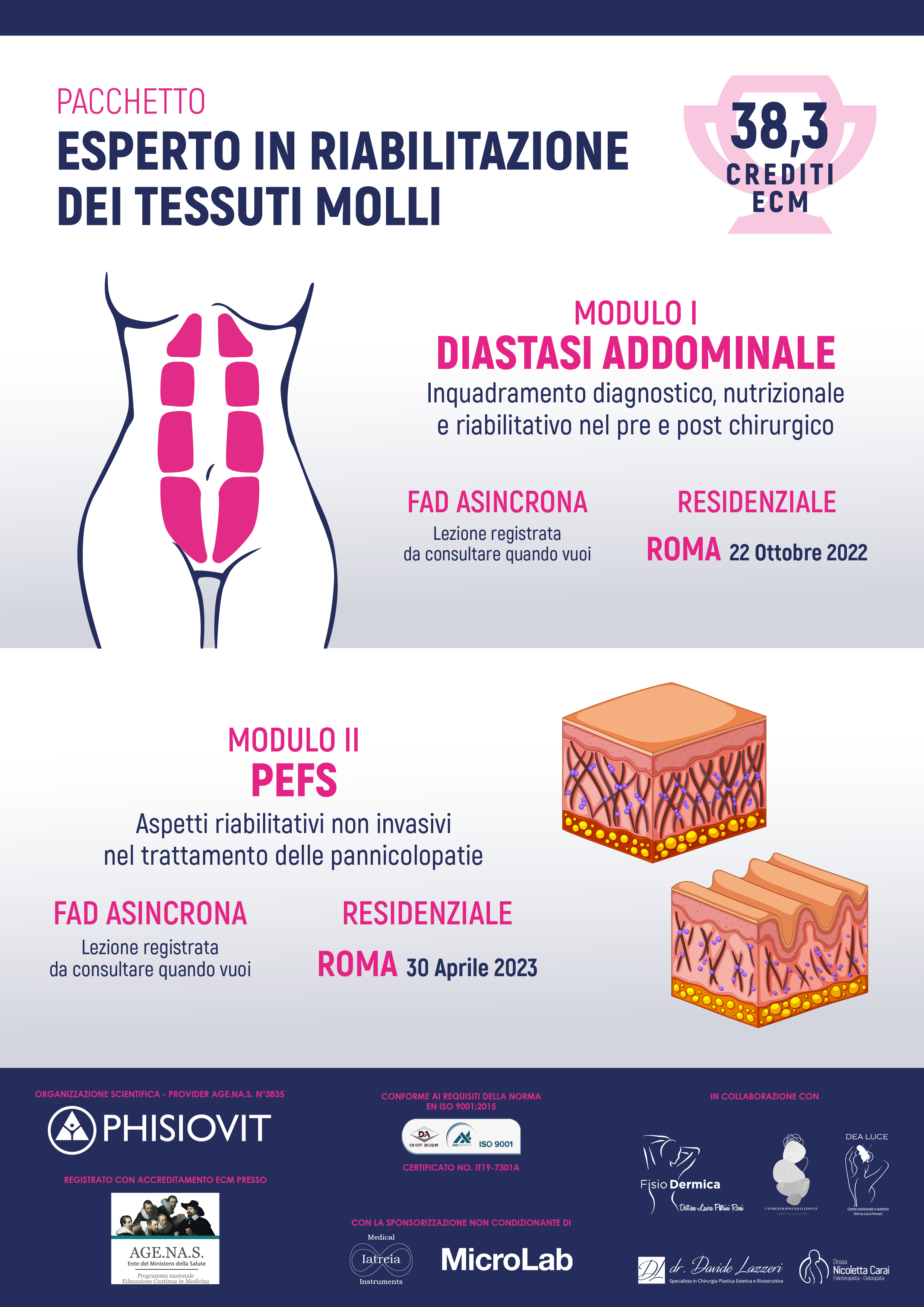 • Fisiodermica - Diastasi Addominale: Inquadramento Diagnostico, Nutrizionale e Riabilitativo nel Pre e Post Chirurgico (Docenti: L. P. Rossi, D. Lazzeri, N. Carai, L. Pennazzi) - Edizione Blended di Roma, data in presenza sabato 22 ottobre 2022