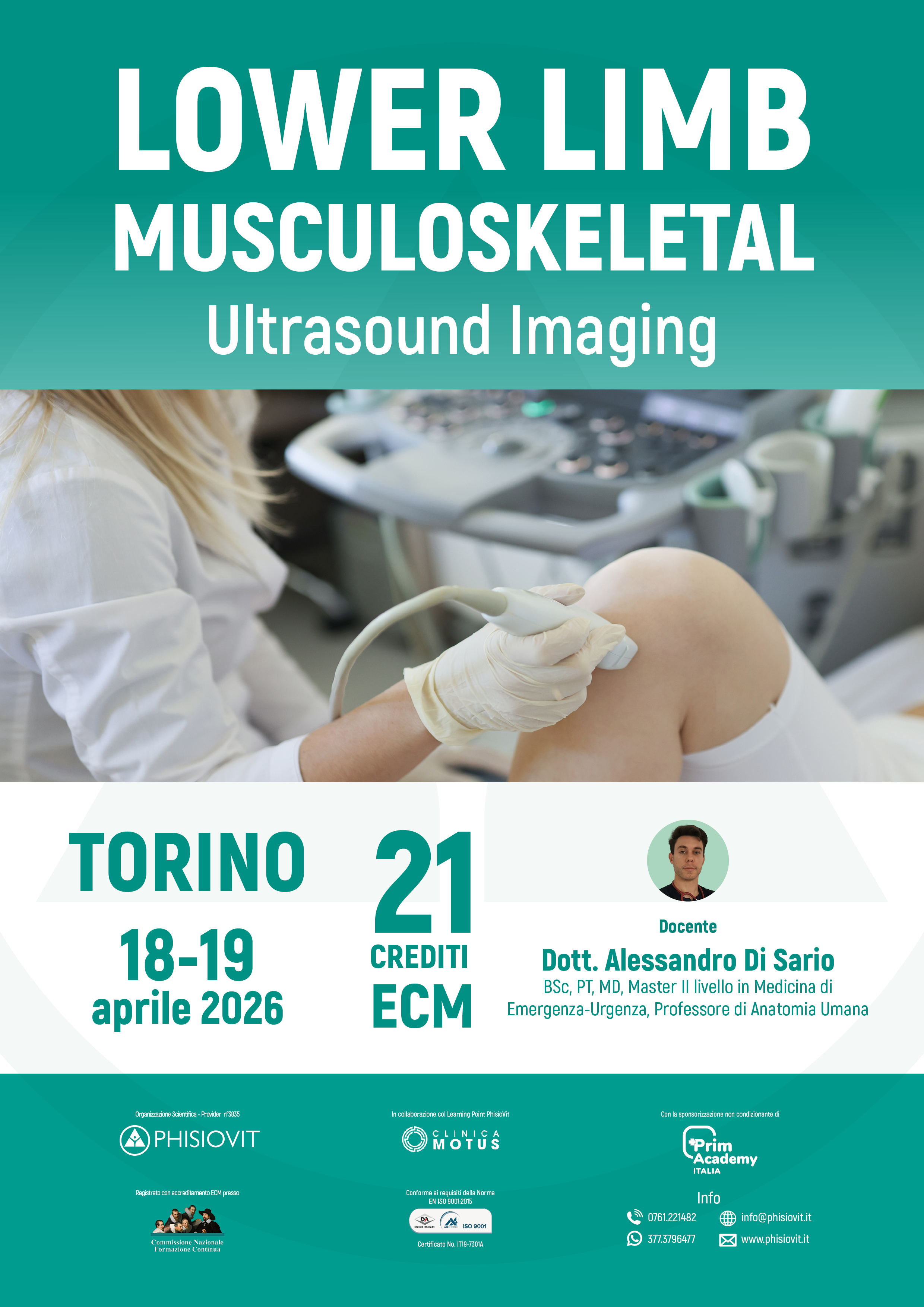 Lower Limb Musculoskeletal Ultrasound Imaging è un corso innovativo rivolto a fisioterapisti e professionisti della riabilitazione che desiderano integrare l'ecografia muscoloscheletrica nella pratica clinica quotidiana. L'evoluzione della figura del fisioterapista, sempre più orientata all'evidenza scientifica, richiede strumenti affidabili e specifici per ottimizzare la valutazione clinica e personalizzare i trattamenti. Questo corso offre un approccio pratico e interattivo all'uso dell'ecografia muscoloscheletrica per l'analisi delle strutture osteo-articolari e muscolo-tendinee degli arti inferiori. I partecipanti avranno l'opportunità di apprendere in un contesto altamente operativo, alternandosi nei ruoli di operatori e pazienti. L'ecografia, grazie alla sua capacità di fornire immagini ad alta risoluzione in tempo reale, rappresenta un valore aggiunto significativo nella pratica riabilitativa, migliorando l'accuratezza delle valutazioni, il monitoraggio dei progressi terapeutici e la comunicazione con i pazienti. Il corso include anche una sessione specifica dedicata allo screening for referral, con un focus sulla trombosi venosa profonda (TVP). L'obiettivo, in questo caso, è fornire ai partecipanti le competenze necessarie per riconoscere precocemente i segni e i sintomi sospetti di una TVP, permettendo un tempestivo invio a valutazione specialistica. Questo aspetto è cruciale per prevenire complicanze potenzialmente gravi, come l'embolia polmonare, garantendo la sicurezza del paziente e migliorando l'efficacia del percorso terapeutico. Verranno illustrati i segni ecografici di sospetto e fornite competenze per riconoscere precocemente condizioni critiche, facilitando un rapido invio a valutazioni specialistiche. Il corso non ha l'obiettivo di formare i partecipanti alla diagnosi medica, ma di fornire strumenti per integrare l’ecografia nella valutazione funzionale e riabilitativa, in stretta collaborazione con il team medico.