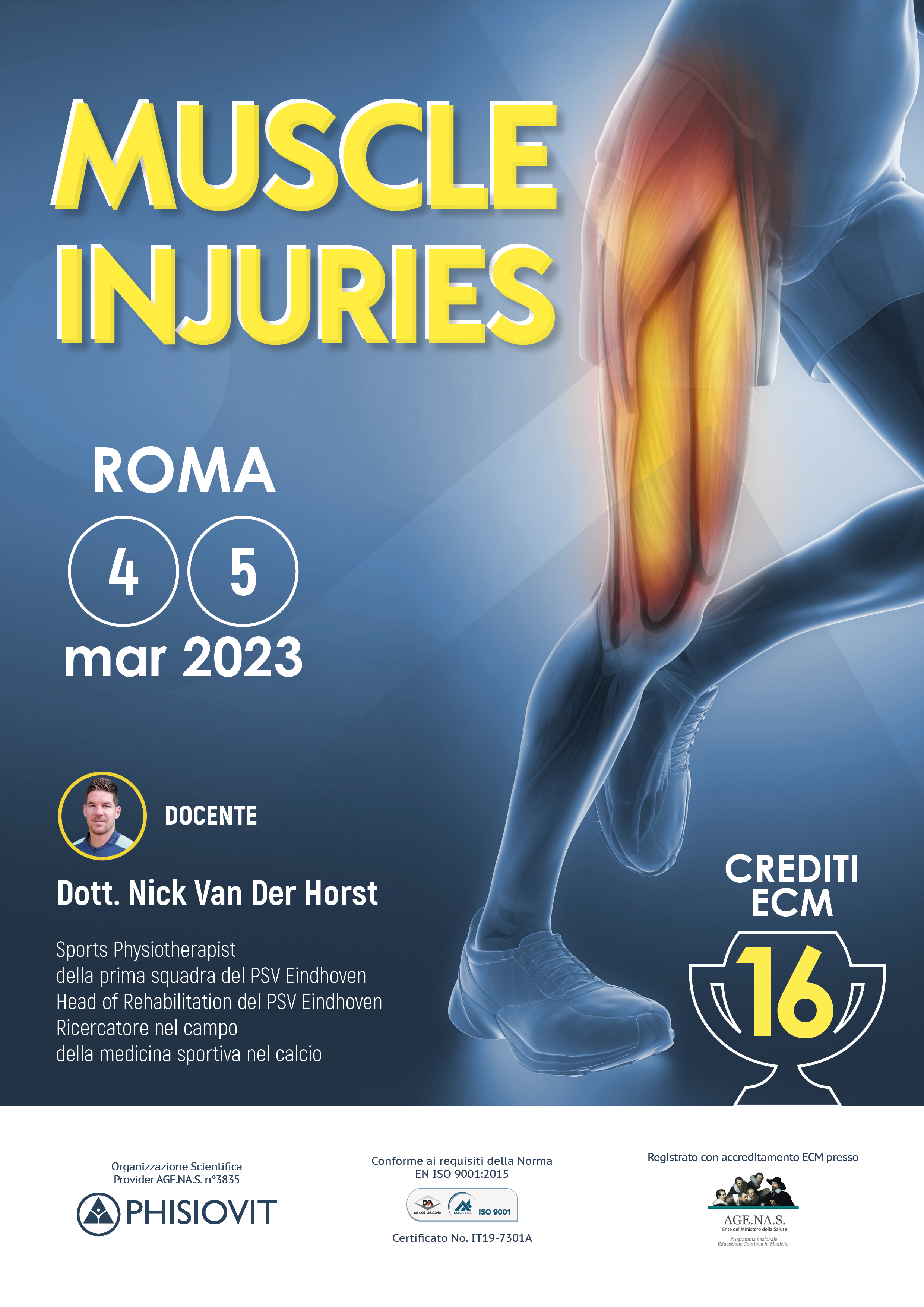 L'obiettivo di questo corso è fornire ai medici le conoscenze necessarie per comprendere ed interpretare la ricerca sulle lesioni muscolari, e per integrare la ricerca nel trattamento quotidiano del riabilitatore al fine di offrire una pratica basata sull'evidenza. Ci si concentra sull'applicazione di queste abilità sull'infortunio muscolare più comune negli sport: la lesione da sforzo ai muscoli hamstrings. Questo corso di due giorni riguarda i fattori di rischio e lo screening, la diagnosi e la riabilitazione, nonché il Return to Sport (RTS). Consiste in molteplici modi di apprendimento e include lezioni, sessioni di gruppo interattive, risoluzione individuale di problemi, dimostrazioni pratiche e workshop clinici. I partecipanti dovrebbero essere vestiti in modo appropriato per le componenti pratiche, essenziali i pantaloncini, ed essere preparati a partecipare a tutti i momenti della giornata.