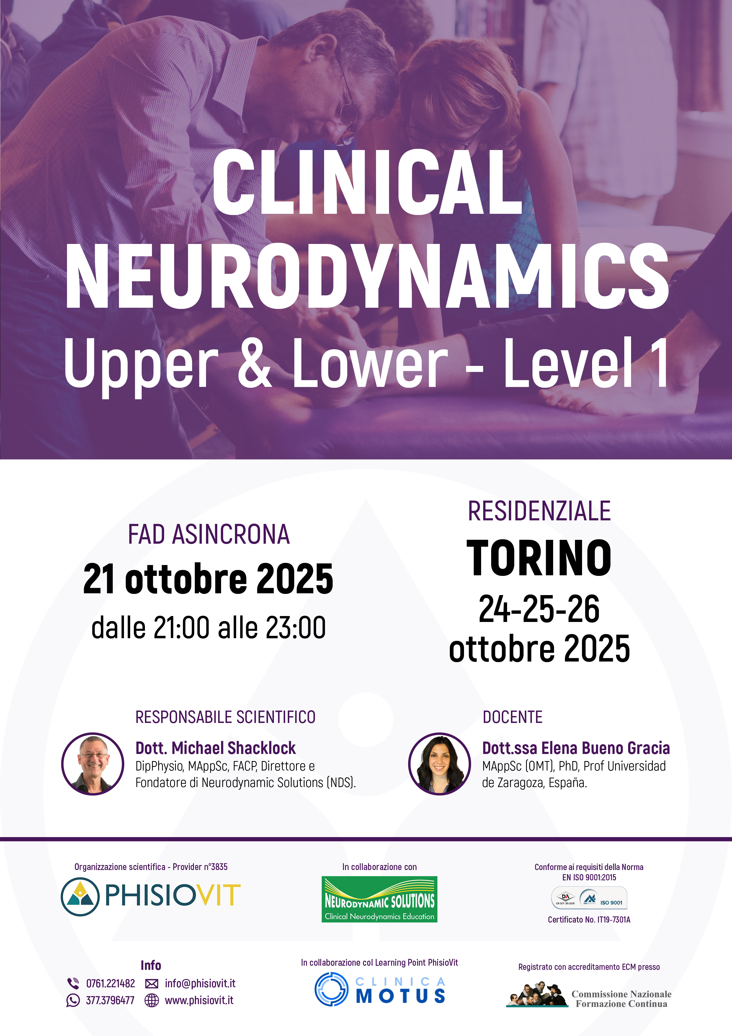 Attraverso tre giorni di formazione intensiva, i partecipanti acquisiranno competenze pratiche sotto la supervisione di istruttori certificati direttamente da Michael Shacklock, seguendo il suo principio guida: "Mantieni l'entusiasmo, il sé creativo, capisci la scienza e preoccupati per i tuoi pazienti". La formazione si concentra sulla decostruzione e ricostruzione dei principi neurodinamici, permettendo ai fisioterapisti di sviluppare un ragionamento clinico avanzato e di selezionare le tecniche più efficaci per ogni specifico caso clinico, dalla valutazione neuroanatomica al trattamento manuale specializzato.
