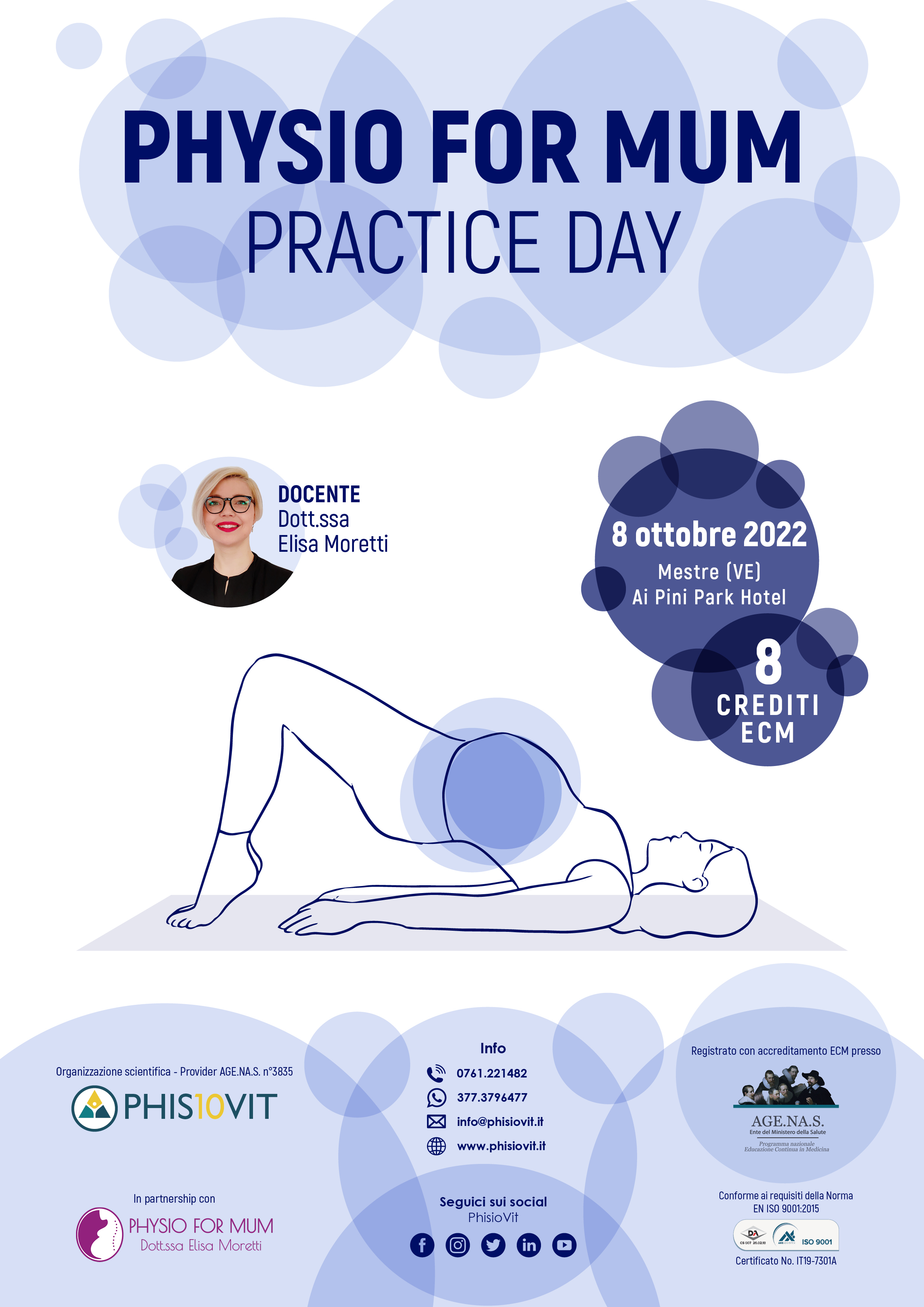 Questo corso in presenza è un progetto formativo che nasce dall'esperienza della Dott.ssa Elisa Moretti che è riuscita a coniugare le sue competenze già acquisite in ambito di esercizio riabilitativo e pilates terapeutico con la sua gravidanza. Gravidanza vissuta durante il primo lock down che ha portato la fisioterapista Moretti ad ideare un percorso di prevenzione facile da riprodurre presso gli studi e le strutture sanitarie, ma anche un valido supporto per esercizi da fornire al paziente da fare a casa come autotrattamento. È un corso quindi pensato per tutte le figure sanitarie che lavorano con donne in gravidanza e post parto, diventando così un approfondimento su esercizi sia a corpo libero che con piccoli attrezzi mirati e adattati per donne in dolce attesa.
