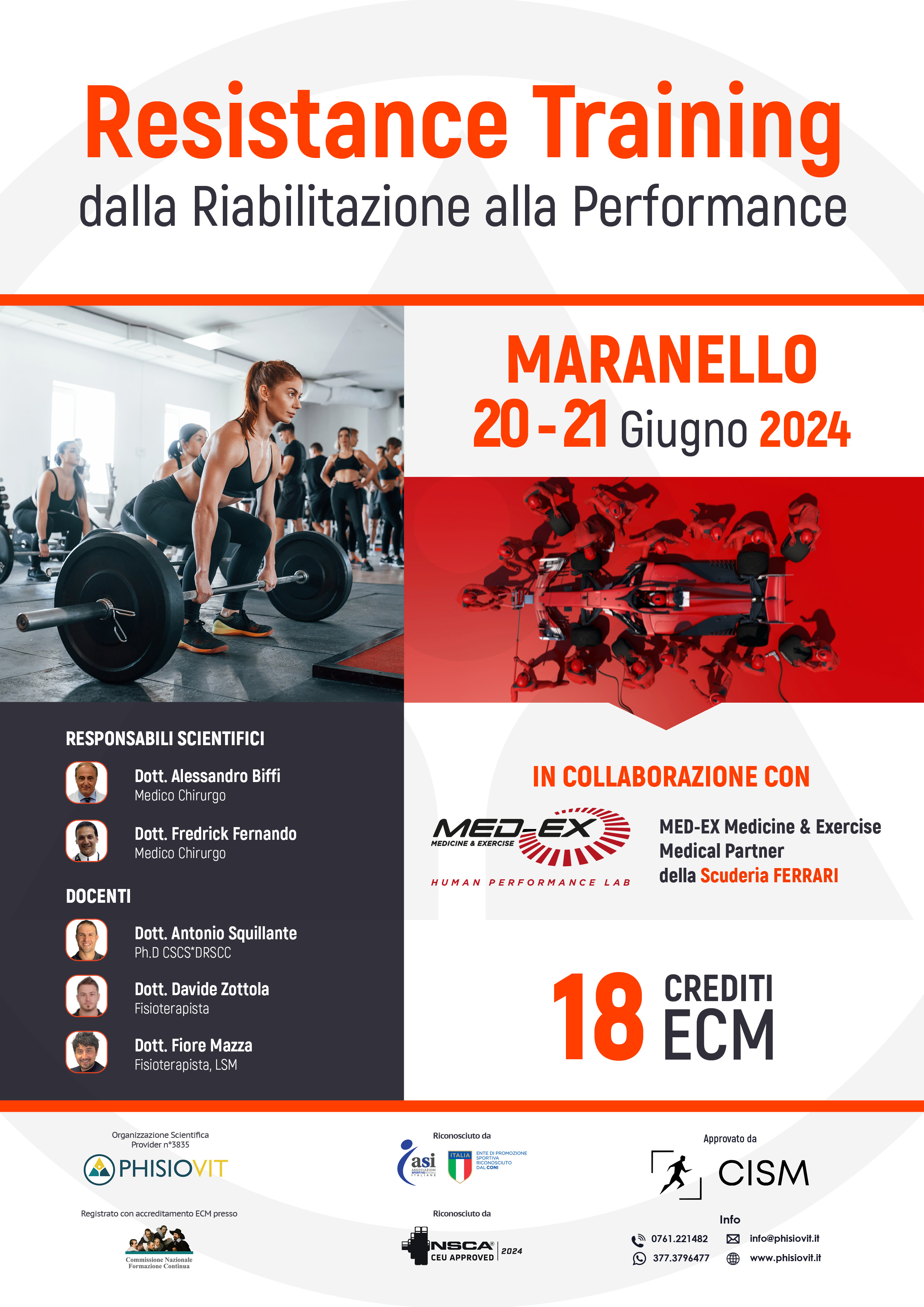 Questo corso ha come obiettivo quello di fornire a preparatori atletici, specialisti del movimento, fisioterapisti e medici nozioni teoriche e pratiche per la realizzazione di programmi di allenamento per la forza. Lo scopo è quello di strutturare programmi di allenamento a lungo termine incentrati sulla performance fisica e sportiva, sulla riabilitazione e sul return to play applicando sia i principi dell'evidence based practice per costruire programmi di lavoro personalizzati che standard utilizzati dagli specialisti del team Med-Ex. Le sedute in sala pesi offrono la possibilità di approfondire l'uso di esercizi per la forza con bilanciere ed esercizi pliometrici oltre a test di valutazione funzionale assolutamente indispensabili in fase di screening. Esercizi necessari per mostrare i progressi ottenuti da un intervento mirato a: