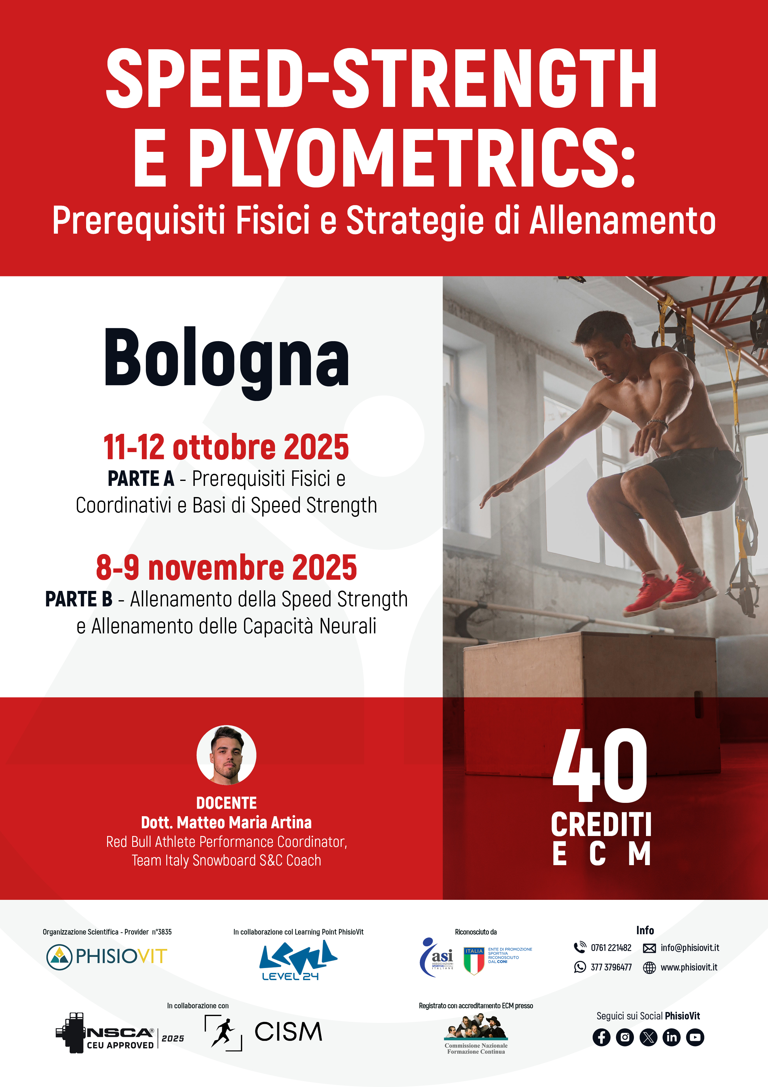 Il corso Speed-Strength e Plyometrics è composto da due moduli della durata di due giorni ciascuno, per un totale di 40 crediti ECM: