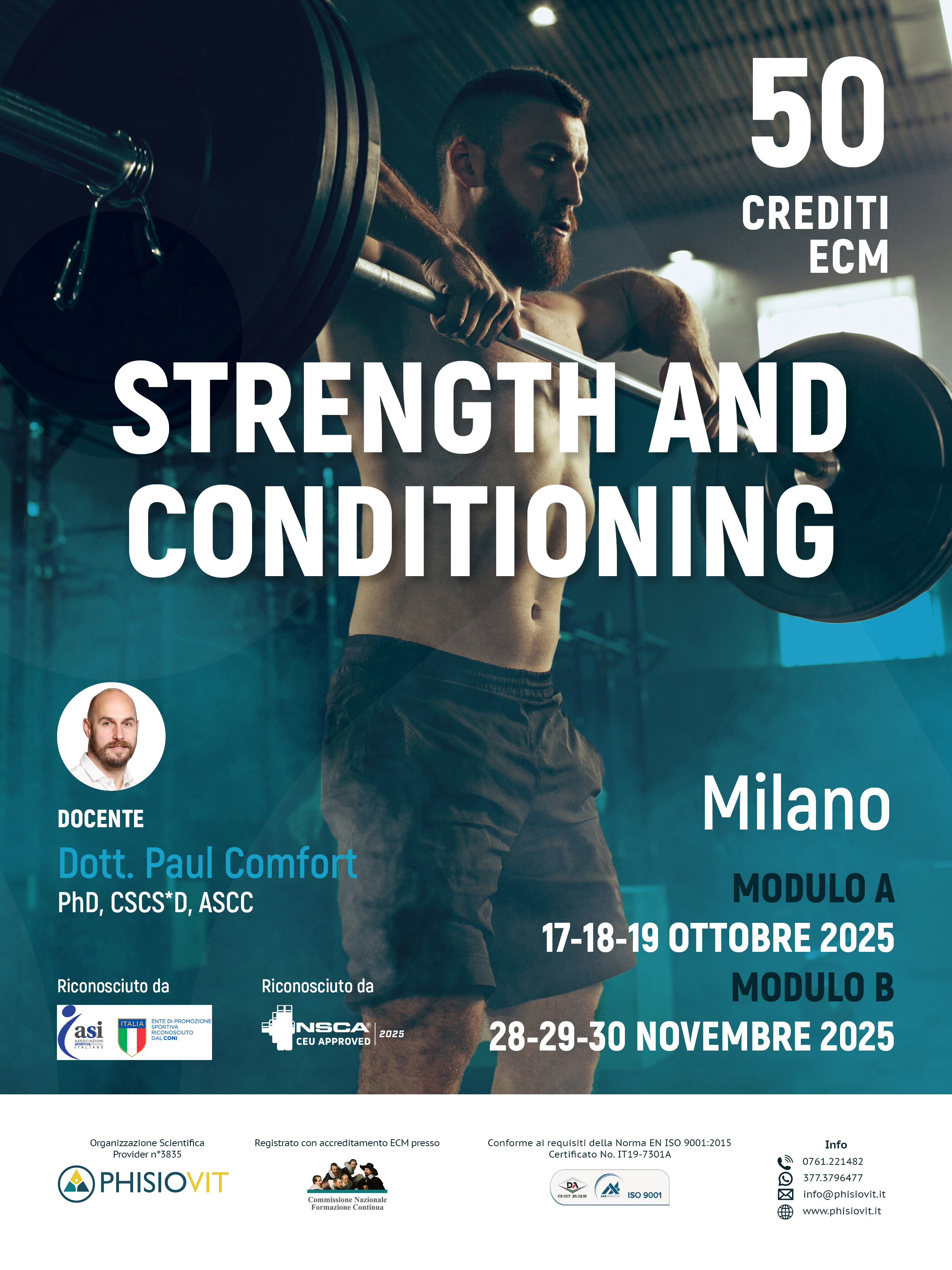 Il corso Strength and Conditioning è composto da due moduli della durata di tre giorni ciascuno, per un totale di 50 crediti ECM: