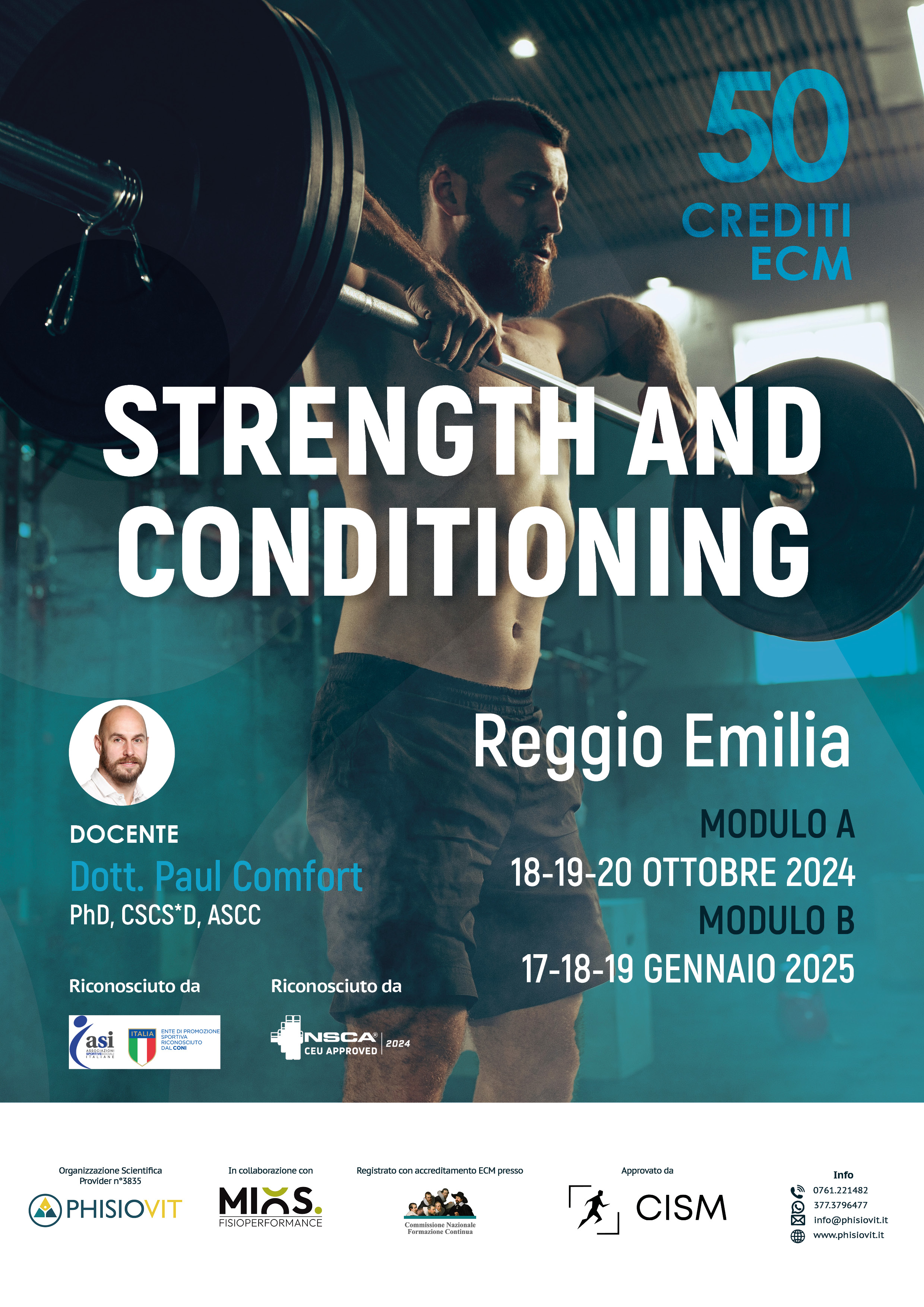 Il corso Strength and Conditioning è composto da due moduli della durata di tre giorni ciascuno, per un totale di 50 crediti ECM: