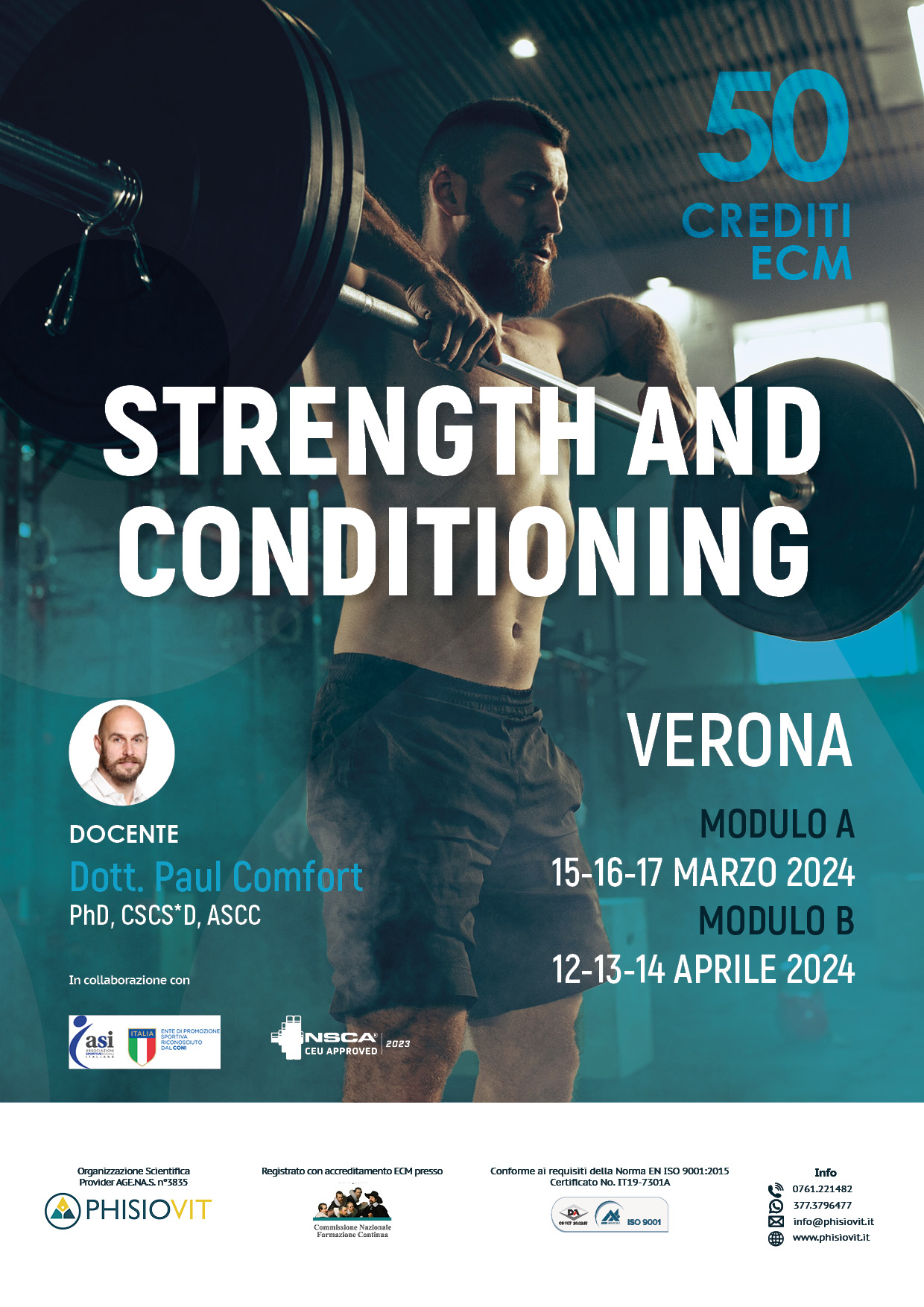 Il corso Strength and Conditioning è composto da due moduli della durata di tre giorni ciascuno, per un totale di 50 crediti ECM: