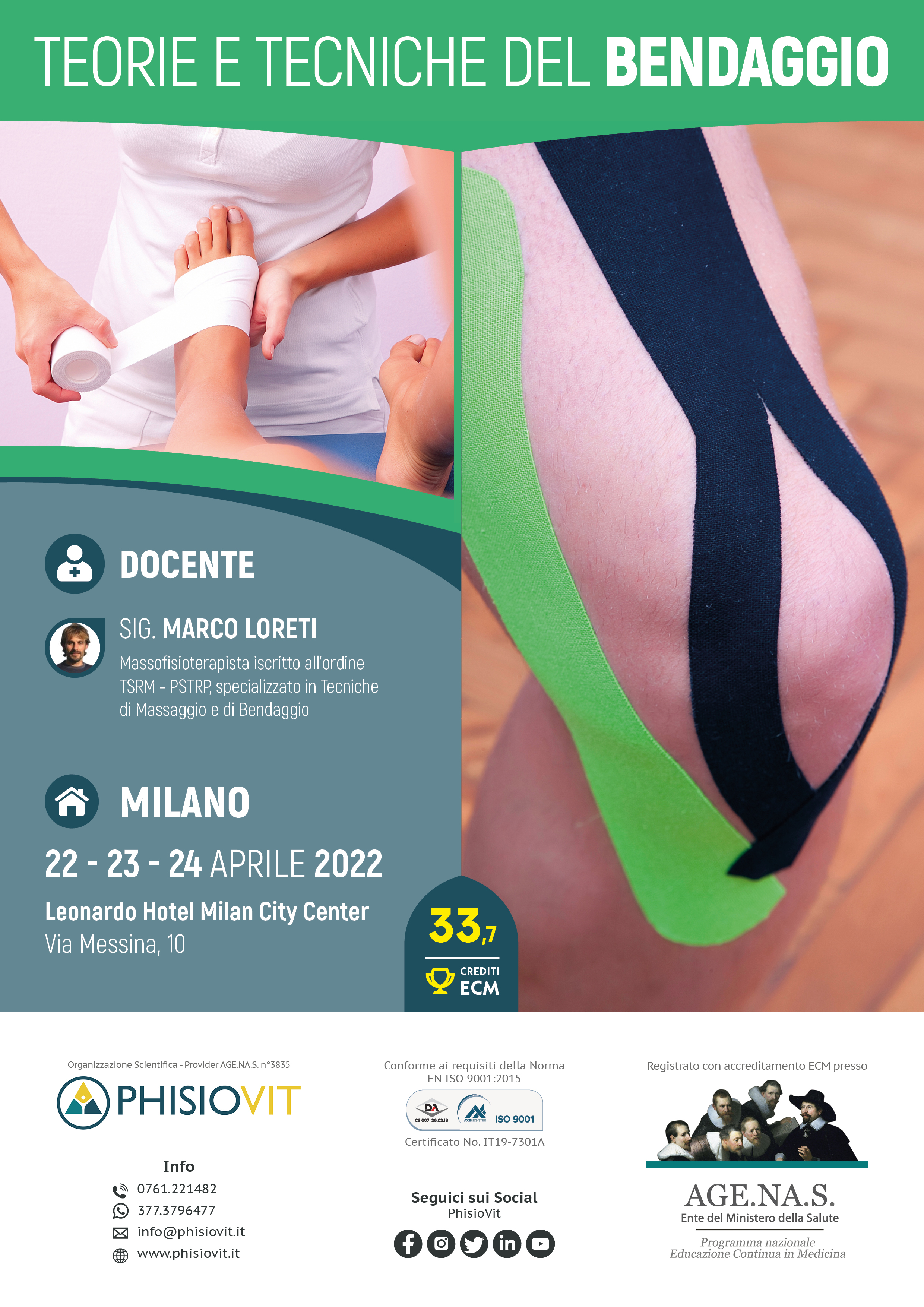 I bendaggi negli ultimi anni si sono sviluppati di pari passo con l'evoluzione dei materiali a disposizione: il bendaggio funzionale ed il taping chinesiologico, che accompagnano le principali tecniche oggi in uso, possono essere utilizzati in maniera complementare e sinergica per affrontare, gestire e risolvere le principali patologie in esito a traumatologia sportiva in fase acuta e subacuta. Molto spesso vi è necessità di includere fra queste tecniche anche quelle che utilizzano bendaggi elastocompressivi ed impacchi per gestire tutte quelle situazioni in cui è presente edema e ristagno di liquidi. Si è reso quindi necessario strutturare un progetto didattico che educasse alla conoscenza e all'uso di questi materiali e che addestrasse il discente all'utilizzo delle tre principali tecniche conosciute e utilizzate oggi ovvero: