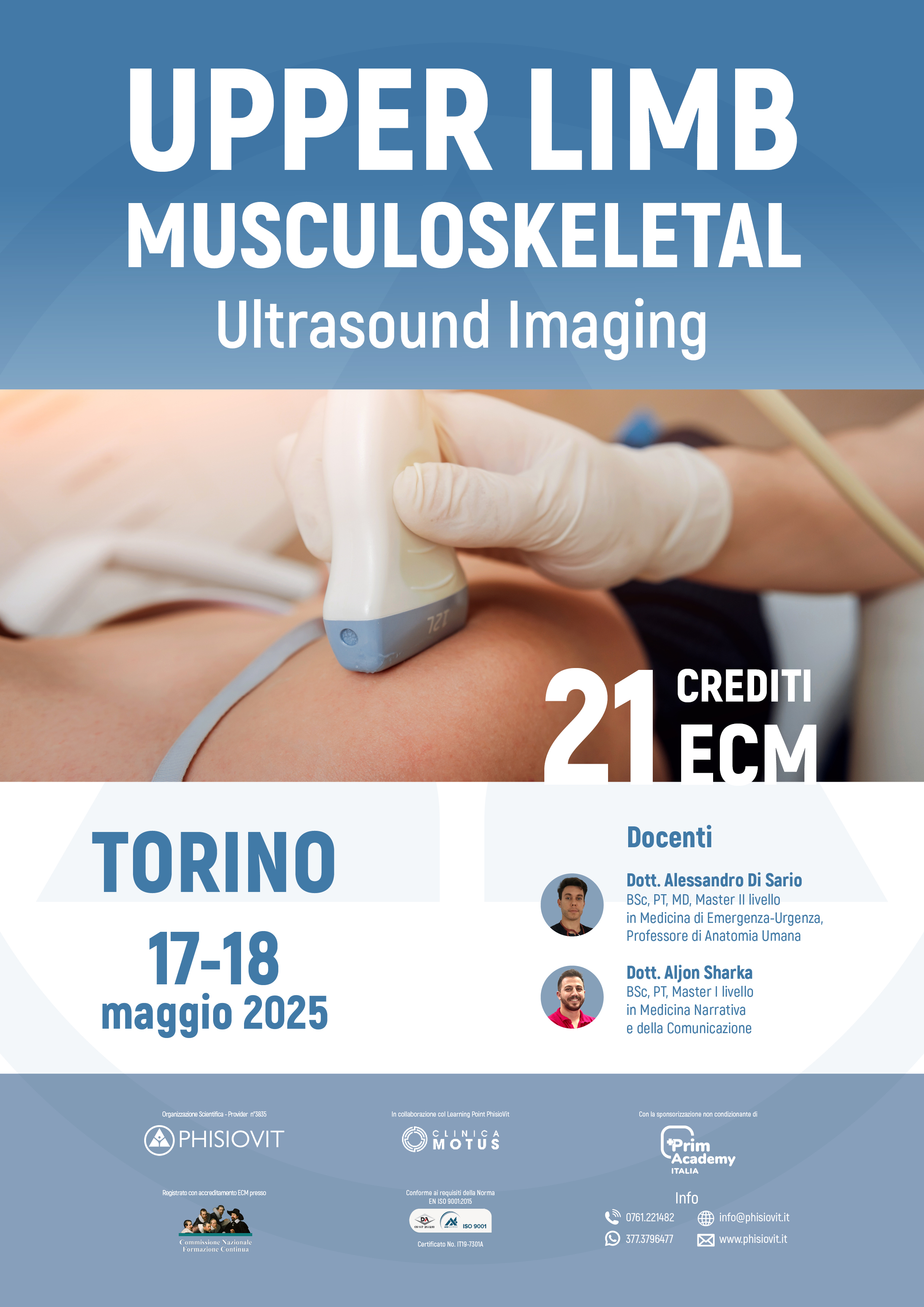 Upper Limb Musculoskeletal Ultrasound Imaging è un corso innovativo rivolto a fisioterapisti e professionisti della riabilitazione che desiderano integrare l'ecografia muscoloscheletrica nella pratica clinica quotidiana. L'evoluzione della figura del fisioterapista, sempre più orientata all'evidenza scientifica, richiede strumenti affidabili e specifici per ottimizzare la valutazione clinica e personalizzare i trattamenti. Questo corso offre un approccio pratico e all'uso dell'ecografia muscoloscheletrica per l'analisi delle strutture osteo-articolari e muscolo-tendinee degli arti superiori. I partecipanti avranno l'opportunità di apprendere in un contesto altamente operativo, alternandosi nei ruoli di operatori e pazienti. L'ecografia, grazie alla sua capacità di fornire immagini ad alta risoluzione in tempo reale, rappresenta un valore aggiunto significativo nella pratica riabilitativa, migliorando l'accuratezza delle valutazioni, il monitoraggio dei progressi terapeutici e la comunicazione con i pazienti. Il corso include anche sessioni specifiche dedicate allo screening for referral, ovvero l'identificazione di segni e sintomi che potrebbero indicare patologie non muscoloscheletriche o condizioni che richiedono un approfondimento medico specialistico. Questo aspetto è fondamentale per garantire la sicurezza del paziente, garantire un tempestivo invio a valutazione medica specialistica, migliorare l'appropriatezza dell'intervento riabilitativo ed evitare ritardi diagnostici in caso di patologie sottostanti più gravi. Verranno illustrati i segni ecografici di sospetto e fornite competenze per riconoscere precocemente condizioni critiche, facilitando un rapido invio a valutazioni specialistiche. Il corso non ha l'obiettivo di formare i partecipanti alla diagnosi medica, ma di fornire strumenti per integrare l'ecografia nella valutazione funzionale e riabilitativa, in stretta collaborazione con il team medico.