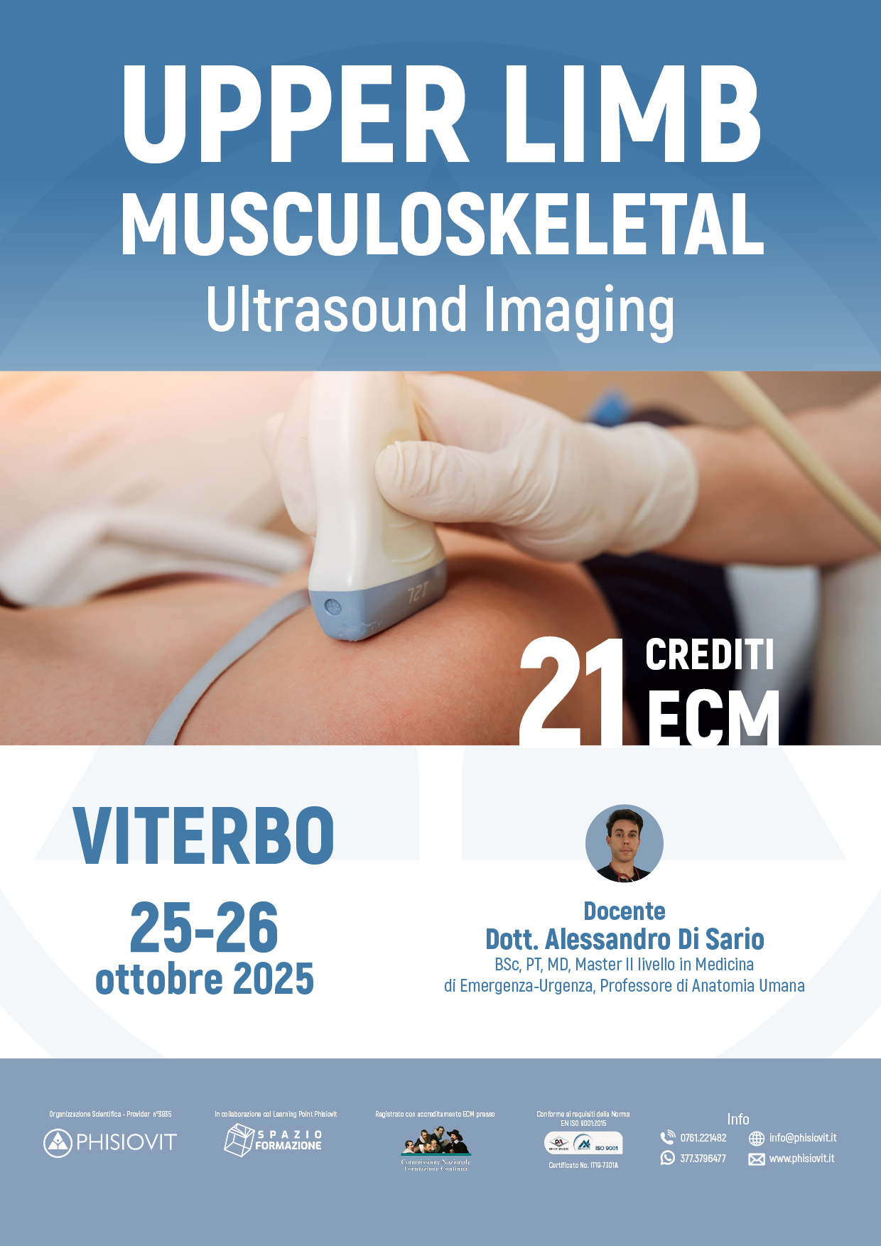 - Lezioni teoriche, per comprendere i principi fondamentali dell'ecografia applicata alla riabilitazione;