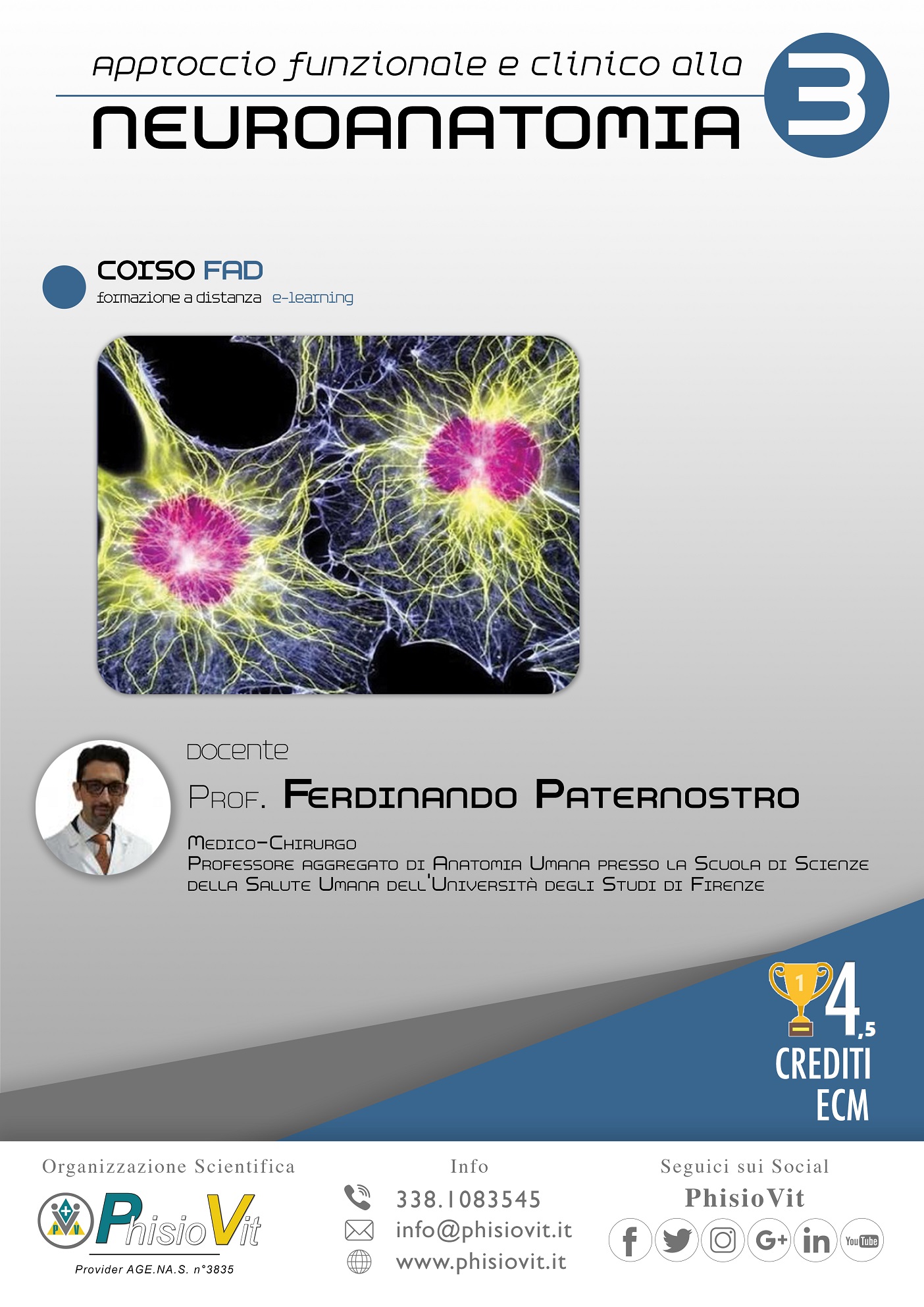 Un approccio funzionale e clinico alla Neuroanatomia è un progetto formativo che si compone di tre parti di cui questa terza unità didattica si intitola "Un approccio funzionale e clinico alla Neuroanatomia 3: cervelletto, vie di senso e di moto, lesioni midollari". Questo percorso didattico è stato ideato e progettato interamente dal Prof. Dr. Ferdinando Paternostro al fine di diffondere sia le basi concettuali per la definizione delle alterazioni posturali e di movimento che si manifestano nelle diverse patologie neurologiche, sia le basi per la definizione dei principi dell'esame clinico della sensibilità, dei riflessi, del tono muscolare, della coordinazione e dell'equilibrio. La didattica dei tre corsi facenti parte dell'intero pacchetto formativo, si divide in quattro grandi blocchi: