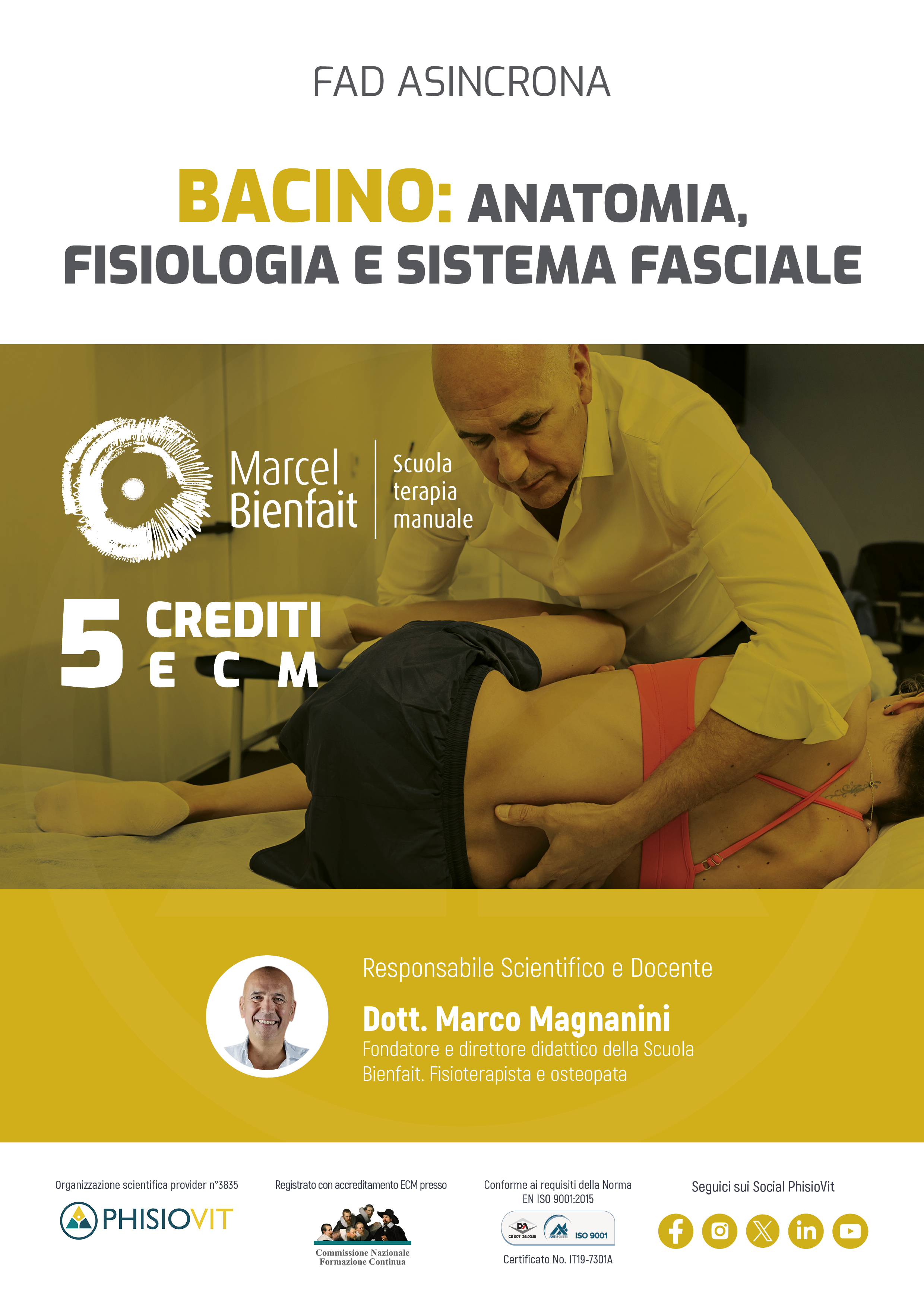 Il docente è il Dott. Marco Magnanini, fisioterapista e osteopata, allievo diretto di Marcel Bienfait, attualmente ricopre il ruolo di Direttore Didattico della Scuola Bienfait. Fondata nel 2010, la Scuola Marcel Bienfait è l’unico ente ufficialmente autorizzato a insegnare il Metodo Bienfait, un modello di pensiero clinico basato sull’osservazione, sull’ascolto e sulla centralità della persona. Per approfondire l’offerta formativa e i percorsi disponibili è possibile consultare la landing page dedicata ai corsi della Scuola di Terapia Manuale Marcel Bienfait.