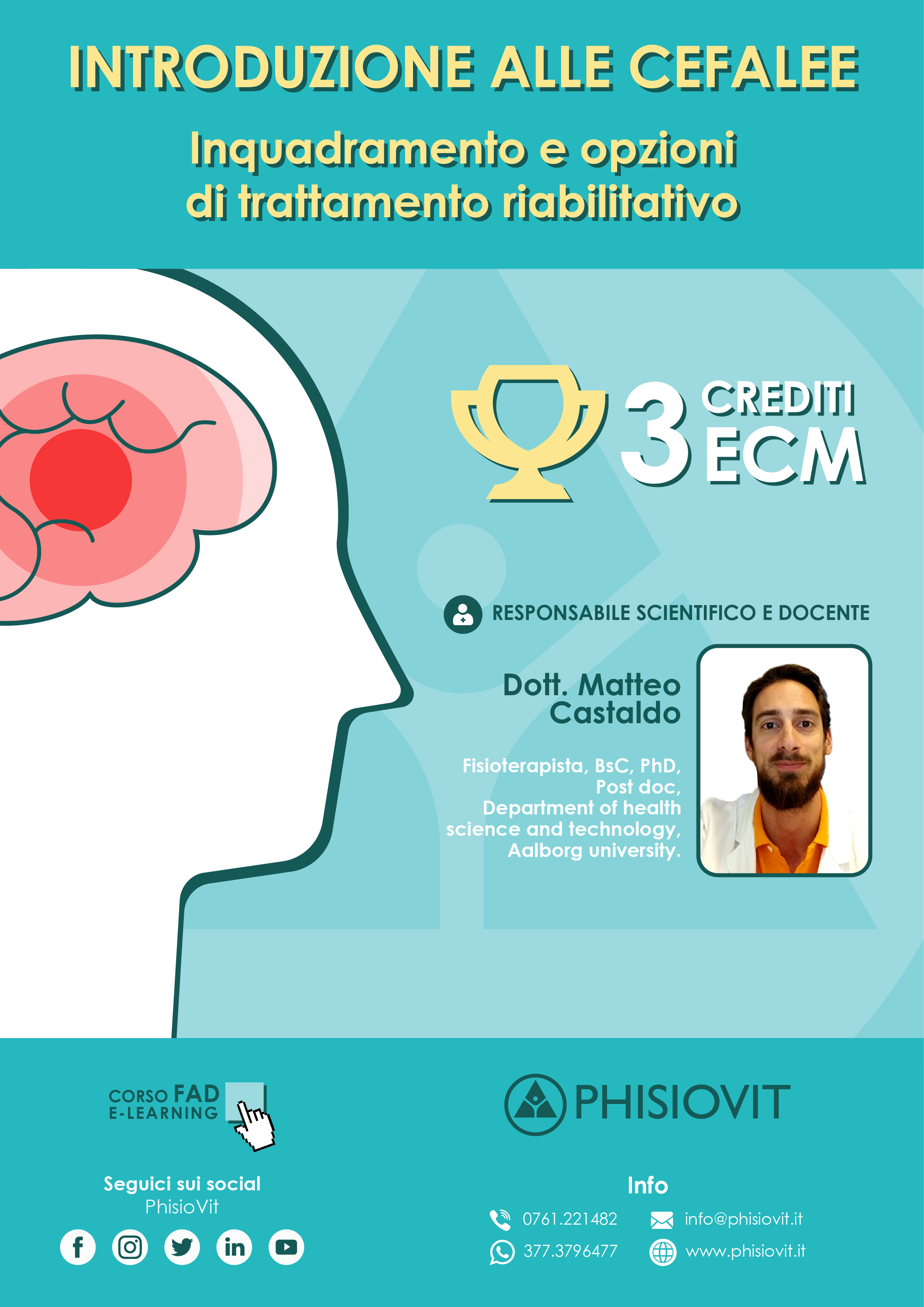 Dottore in fisioterapia, Matteo Castaldo affianca all'attività clinica la ricerca scientifica con un PhD svolto presso l'Università di Aalborg in Danimarca sulla sensibilizzazione centrale nelle patologie del rachide cervicale. Egli è inoltre tuttora ricercatore presso la stessa Università ed ha pubblicato numerosi studi sulle cefalee, collaborando con diversi centri sulle cefalee in Italia. Ha completato vari percorsi di terapia manuale in Italia e all'estero ed è anche docente da diversi anni di corsi sui Trigger Points miofasciali e sulla gestione delle cefalee, oltre ad insegnare presso l'Università degli Studi di Parma, presso il Master in Terapia Manuale e Fisioterapia Muscoloscheletrica dell'Università di Chieti (sede di Milano) e presso il Master in Fisioterapia applicata allo Sport dell'Università di Siena. Sta attualmente conseguendo una laurea magistrale in Scienze Cognitive, sotto il dipartimento di Psicologia dell'Università Statale di Milano.