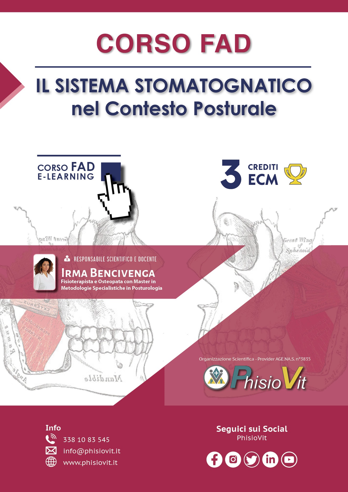 • Prevenire, valutare e rieducare ergonomicamente i disturbi posturali in ordine al sistema stomatognatico nelle sindromi algico-disfunzionali