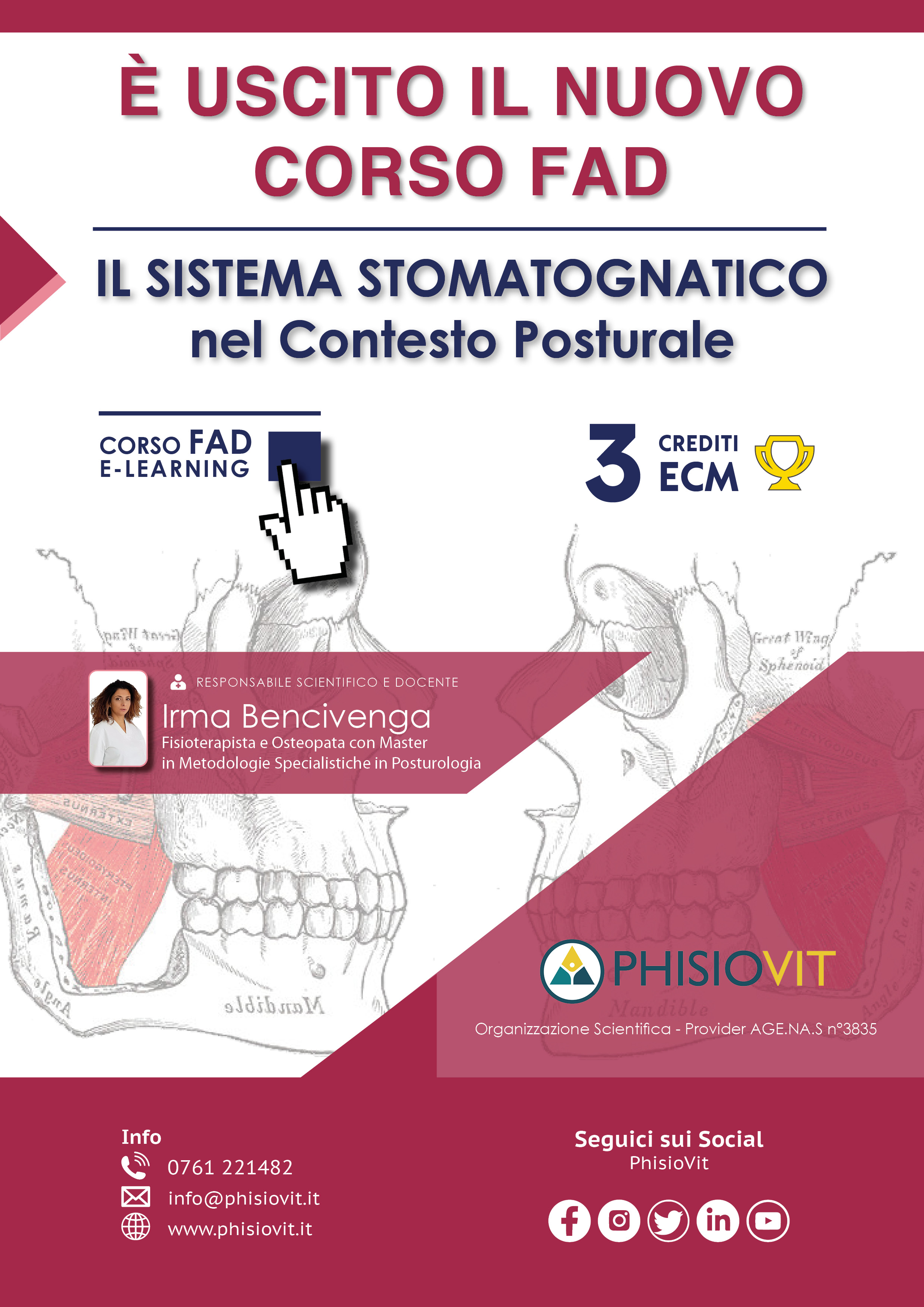 • Prevenire, valutare e rieducare ergonomicamente i disturbi posturali in ordine al sistema stomatognatico nelle sindromi algico-disfunzionali
