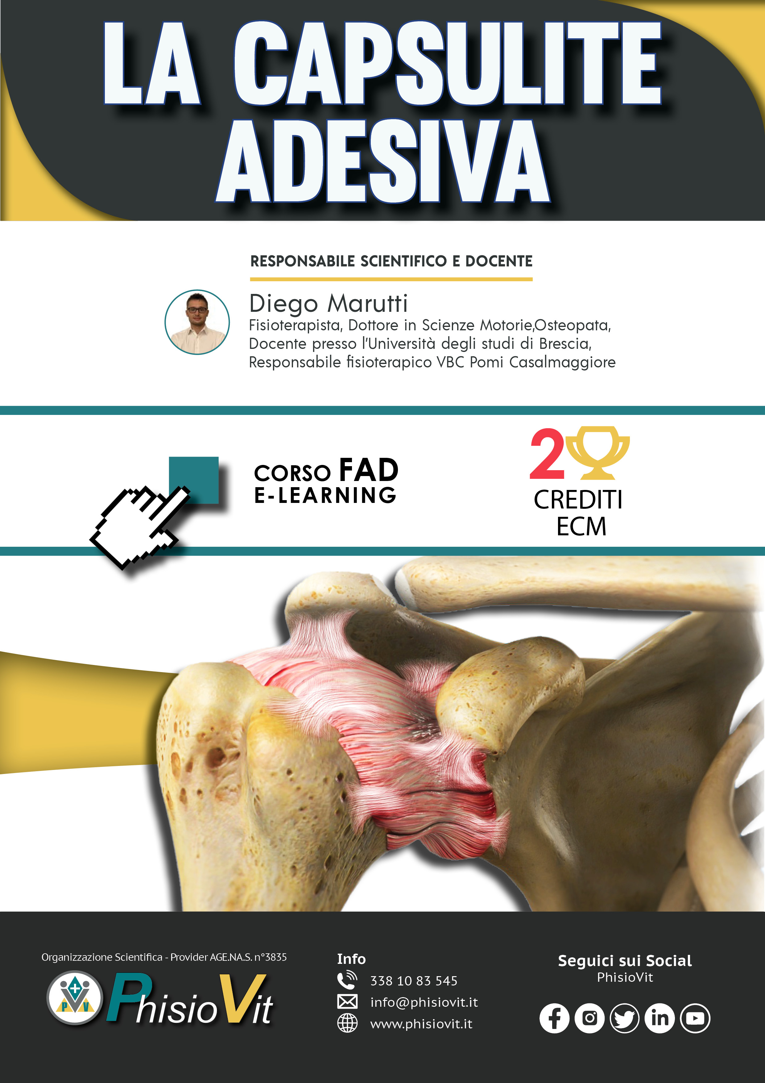 La capsulite adesiva è sicuramente una delle patologie di più difficile gestione per i riabilitatori: la malattia, oltre ad esser di grande interesse riabilitativo, comporta una limitazione importante della qualità di vita dei pazienti e rappresenta un costo sanitario significativo. Lo scopo del corso è dare al discente strumenti di valutazione e trattamento chiari ed efficaci per la gestione del paziente affetto da capsulite adesiva. Partendo da una solida base di anatomia funzionale prosegue descrivendo l'anatomopatologia, la classificazione e la valutazione della capsulite adesiva. Particolare attenzione è rivolta alla valutazione del paziente, all'impostazione di trattamenti di terapia manuale ed esercizio terapeutico. Vengono inoltre approfondite le più recenti tecniche chirurgiche relative a questa patologia. Slide, video di esercizi, tabelle, grafici e schede commentati dal docente Dott. Diego Marutti, rendono unico e aggiornato questo corso a distanza.