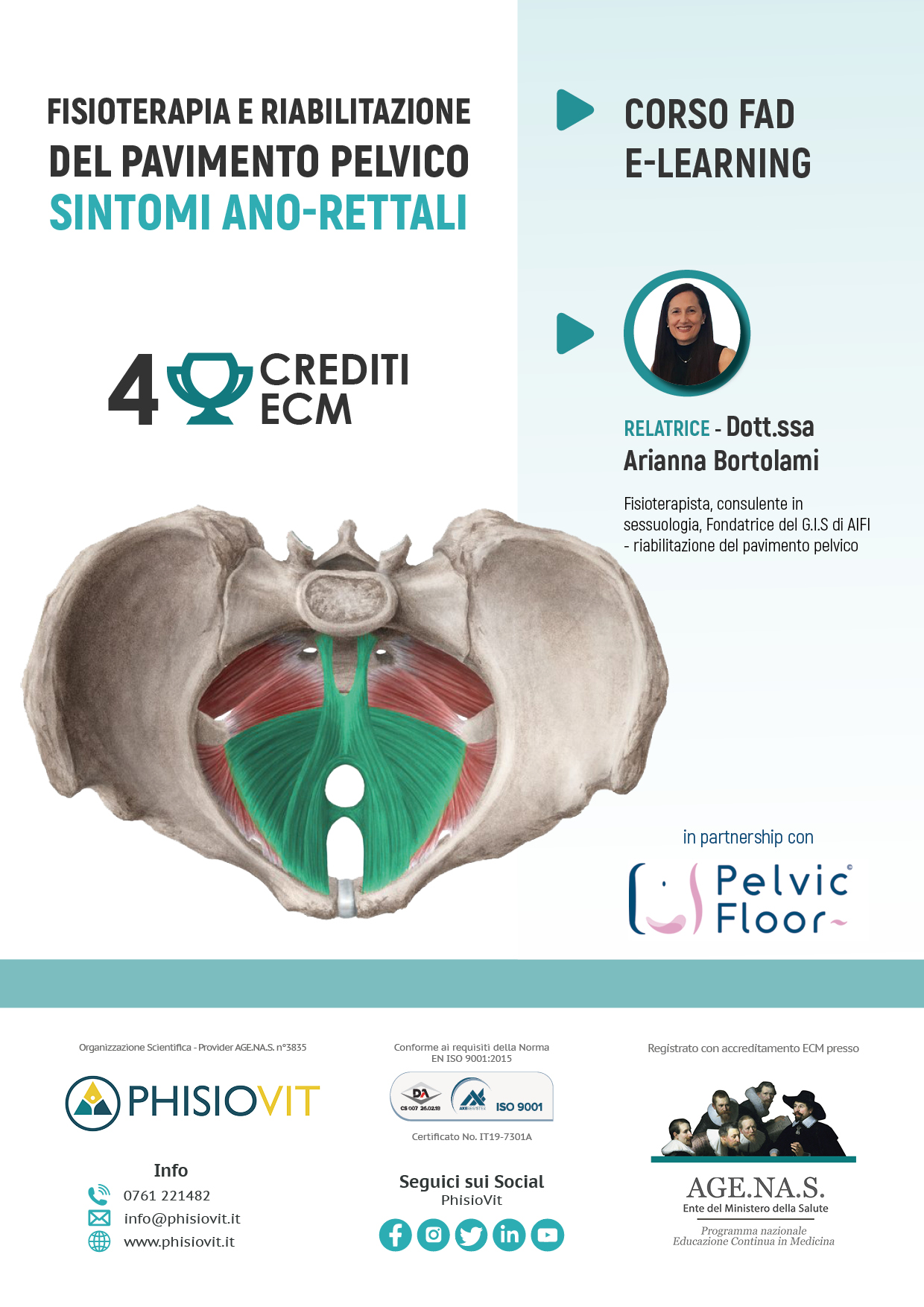 • Conoscere quali forme di stipsi, incontinenza fecale, e altri sintomi ano-rettali possono essere affrontati con la fisioterapia e con la riabilitazione del pavimento pelvico
