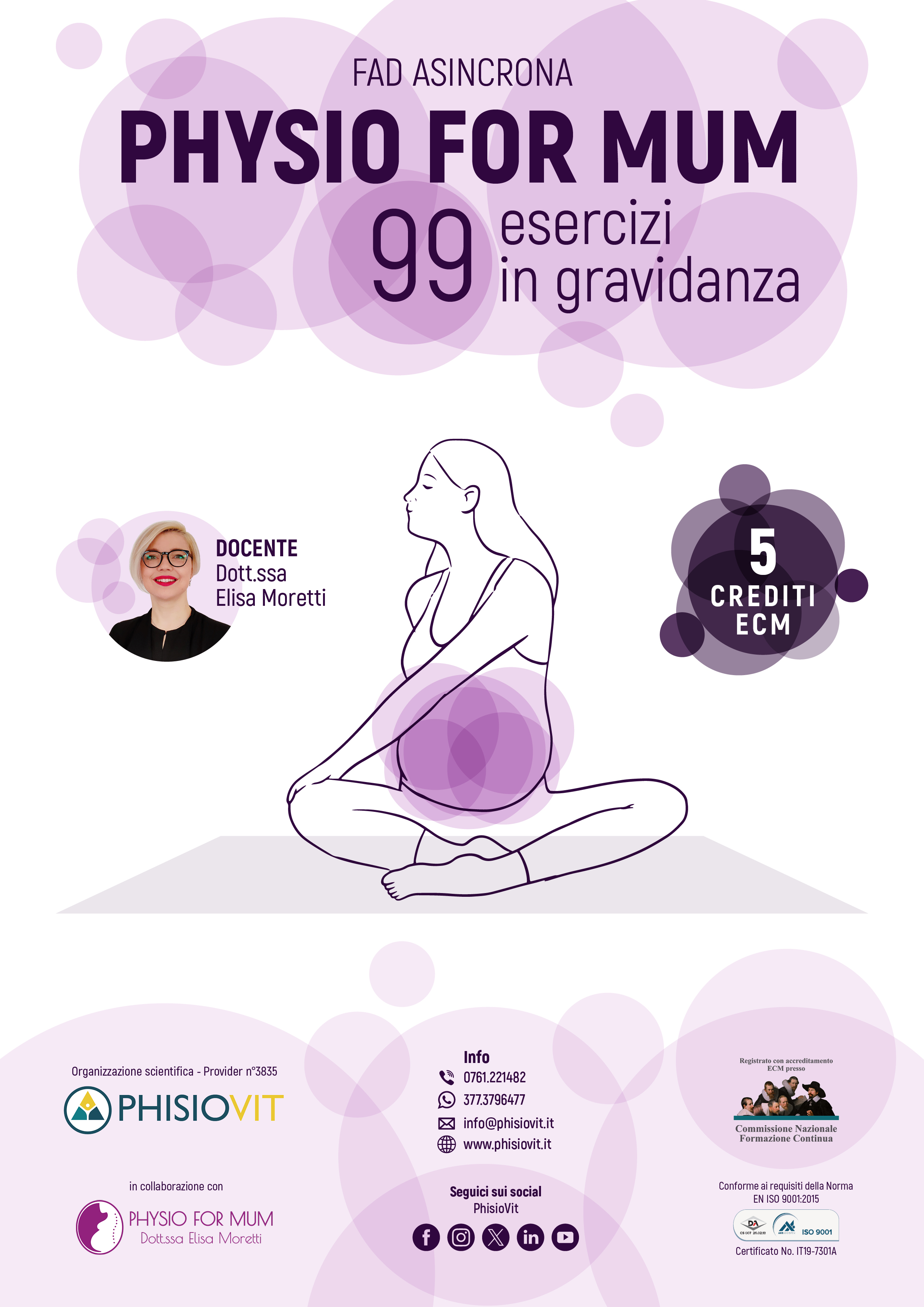 Questo corso fa parte del PACCHETTO PROMO - Physio For Mum Online (Docente: E. Moretti) - che include sette eventi in FAD asincrona: "Physio For Mum 1 - 99 Esercizi In Gravidanza", 5 crediti ECM; "Physio For Mum 2 - Esercizi nel Post Parto", 5 crediti ECM; "Physio For Mum 3 - Mal di Schiena in Gravidanza", 5 crediti ECM; "Physio For Mum 4 - Ripresa dell'Attività Fisica, Diastasi e Cicatrice", 5 crediti ECM; "Physio For Mum 5 - Sindrome del Tunnel Carpale e Circolazione Periferica", 5 crediti ECM; "Physio For Mum 6 - La Prevenzione Pre e Post Parto: Attività Fisica", 5 crediti ECM e "Physio For Mum 7 - Pavimento Pelvico e Respirazione", 5 crediti ECM. CLICCA QUI per avere maggiori informazioni.