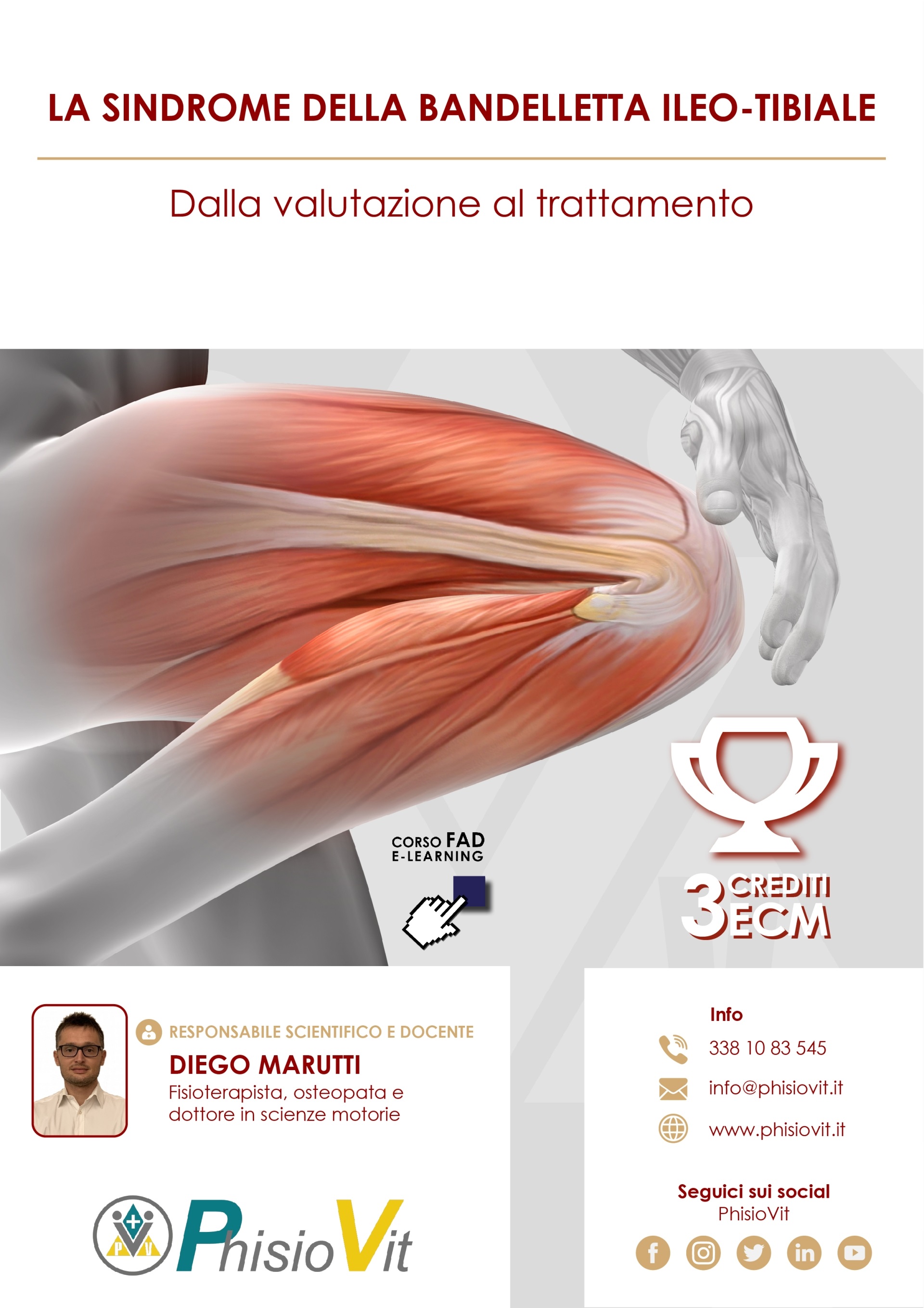 Questo corso dal titolo "La Sindrome della Bandelletta Ileo-Tibiale: dalla Valutazione al Trattamento" è un prodotto didattico derivato da un Webinar registrato che l'autore ha sostenuto per il pubblico: la registrazione viene così messa a disposizione in questo corso per intero e in formato originale lasciando invariata l'interazione che c'è stata durante la diretta e che ha compreso lezioni, domande dell'uditorio, sondaggi sull'evento e dibattito finale. Slide, immagini, video di tecniche ed esercizi, tabelle, grafici e schede commentate dal docente Dott. Diego Marutti interagendo con la platea, hanno reso unico ed aggiornato questo evento a distanza in aula virtuale. La sindrome della bandelletta ileo-tibiale, vista la sua diffusione, è da sempre una delle patologie più affrontate dal punto di vista diagnostico-terapeutico. Le peculiarità anatomiche dell'arto inferiore ed il quadro del paziente, rendono spesso difficoltoso l'inquadramento clinico del paziente. L'insidiosità dei sintomi inoltre, genera spesso nei pazienti impotenza funzionale e dolore. Lo scopo di questo corso è di fare chiarezza sulle attuali evidenze cliniche relative alla valutazione e al trattamento riabilitativo di questa sindrome. Particolare attenzione è indirizzata all'apprendimento di test clinici e all'efficacia dell'attuale setting terapeutico. L'evento nasce con lo scopo di trasmettere allo studente le più importanti ed aggiornate nozioni di trattamento manuale ed esercizio terapeutico sulla sindrome della bandelletta ileo-tibiale.