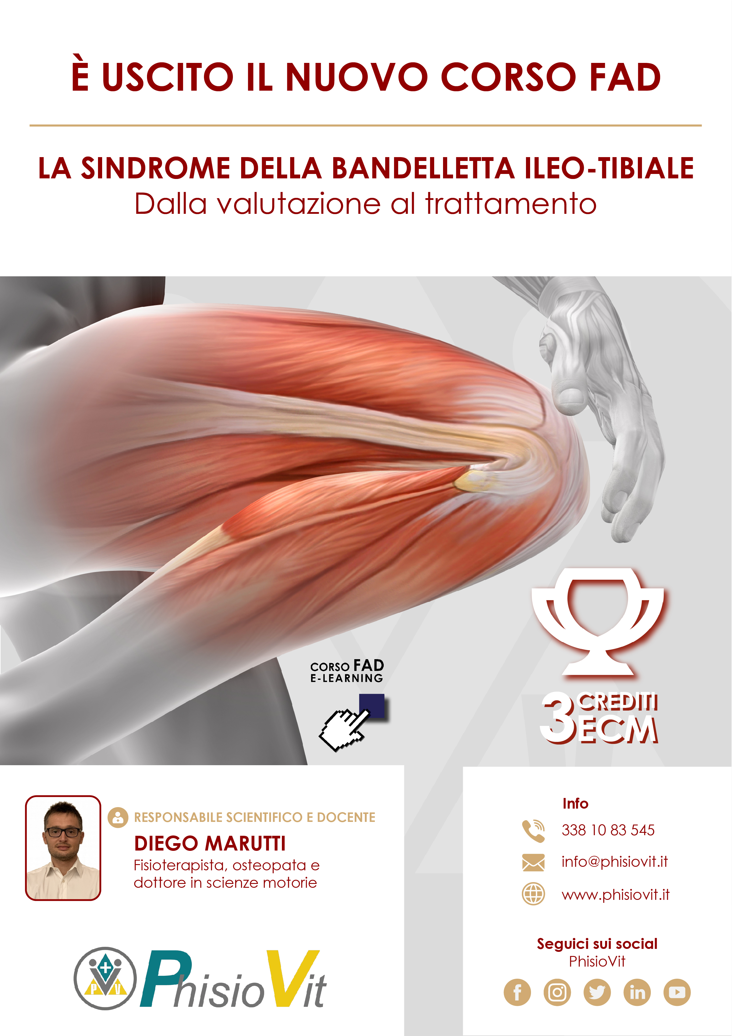Questo corso dal titolo "La Sindrome della Bandelletta Ileo-Tibiale: dalla Valutazione al Trattamento" è un prodotto didattico derivato da un Webinar registrato che l'autore ha sostenuto per il pubblico: la registrazione viene così messa a disposizione in questo corso per intero e in formato originale lasciando invariata l'interazione che c'è stata durante la diretta e che ha compreso lezioni, domande dell'uditorio, sondaggi sull'evento e dibattito finale. Slide, immagini, video di tecniche ed esercizi, tabelle, grafici e schede commentate dal docente Dott. Diego Marutti interagendo con la platea, hanno reso unico ed aggiornato questo evento a distanza in aula virtuale. La sindrome della bandelletta ileo-tibiale, vista la sua diffusione, è da sempre una delle patologie più affrontate dal punto di vista diagnostico-terapeutico. Le peculiarità anatomiche dell'arto inferiore ed il quadro del paziente, rendono spesso difficoltoso l'inquadramento clinico del paziente. L'insidiosità dei sintomi inoltre, genera spesso nei pazienti impotenza funzionale e dolore. Lo scopo di questo corso è di fare chiarezza sulle attuali evidenze cliniche relative alla valutazione e al trattamento riabilitativo di questa sindrome. Particolare attenzione è indirizzata all'apprendimento di test clinici e all'efficacia dell'attuale setting terapeutico. L'evento nasce con lo scopo di trasmettere allo studente le più importanti ed aggiornate nozioni di trattamento manuale ed esercizio terapeutico sulla sindrome della bandelletta ileo-tibiale.