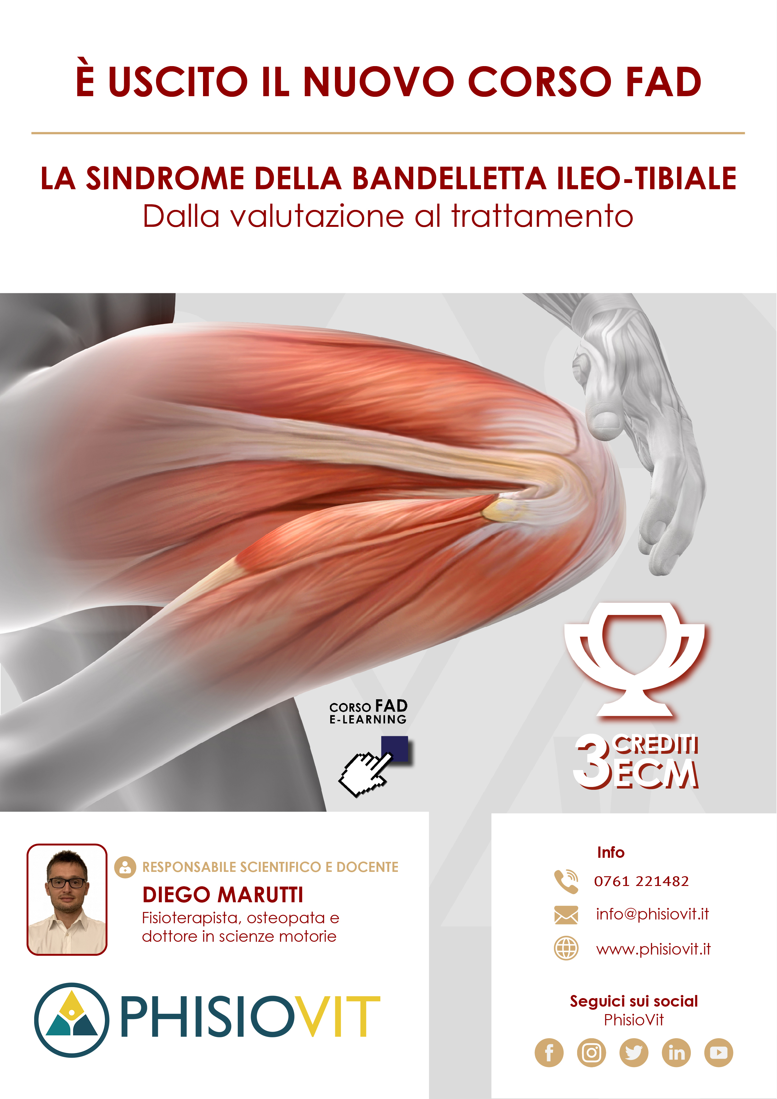 Questo corso dal titolo "La Sindrome della Bandelletta Ileo-Tibiale: dalla Valutazione al Trattamento" è un prodotto didattico derivato da un Webinar registrato che l'autore ha sostenuto per il pubblico: la registrazione viene così messa a disposizione in questo corso per intero e in formato originale lasciando invariata l'interazione che c'è stata durante la diretta e che ha compreso lezioni, domande dell'uditorio, sondaggi sull'evento e dibattito finale. Slide, immagini, video di tecniche ed esercizi, tabelle, grafici e schede commentate dal docente Dott. Diego Marutti interagendo con la platea, hanno reso unico ed aggiornato questo evento a distanza in aula virtuale. La sindrome della bandelletta ileo-tibiale, vista la sua diffusione, è da sempre una delle patologie più affrontate dal punto di vista diagnostico-terapeutico. Le peculiarità anatomiche dell'arto inferiore ed il quadro del paziente, rendono spesso difficoltoso l'inquadramento clinico del paziente. L'insidiosità dei sintomi inoltre, genera spesso nei pazienti impotenza funzionale e dolore. Lo scopo di questo corso è di fare chiarezza sulle attuali evidenze cliniche relative alla valutazione e al trattamento riabilitativo di questa sindrome. Particolare attenzione è indirizzata all'apprendimento di test clinici e all'efficacia dell'attuale setting terapeutico. L'evento nasce con lo scopo di trasmettere allo studente le più importanti ed aggiornate nozioni di trattamento manuale ed esercizio terapeutico sulla sindrome della bandelletta ileo-tibiale.