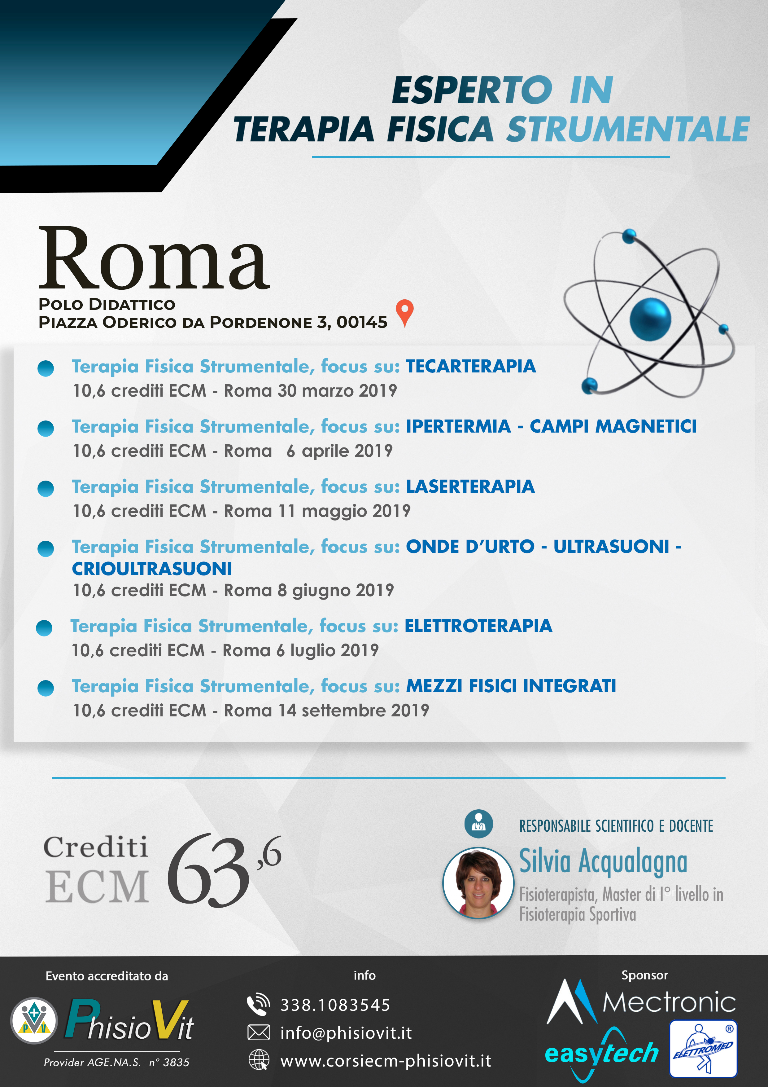 Esperto in Terapia Fisica Strumentale è un progetto didattico che mira a formare i professionisti dell'area riabilitativa e rieducativa nella terapia fisica strumentale, include un pacchetto promozionale di sei corsi ed eroga complessivamente 63,6 crediti ECM. I sei eventi inclusi sono: "La Tecarterapia", 10,6 crediti ECM, Roma 30 marzo 2019, "L'Ipertermia e i Campi Magnetici", 10,6 crediti ECM, Roma 6 aprile 2019, "La Laserterapia", 10,6 crediti ECM, Roma 11 maggio 2019, "Le Onde d'Urto, gli Ultrasuoni e i Crioultrasuoni", 10,6 crediti ECM, Roma 8 giugno 2019, "L'Elettroterapia", 10,6 crediti ECM, Roma 6 luglio 2019 e "Utilità della Terapia Fisica Strumentale nelle patologie fisioterapiche", 10,6 crediti ECM, Roma 14 settembre.