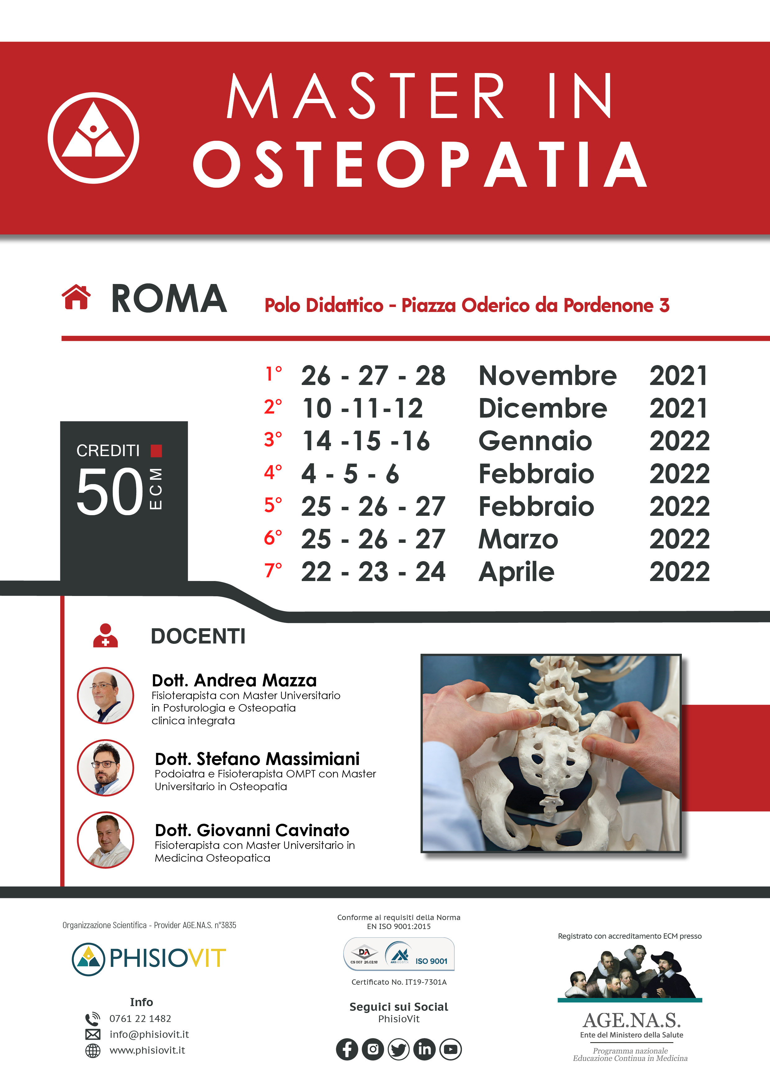 D.: L'ordine e le date dei seminari inclusi nel Master di Osteopatia potrebbero variare?