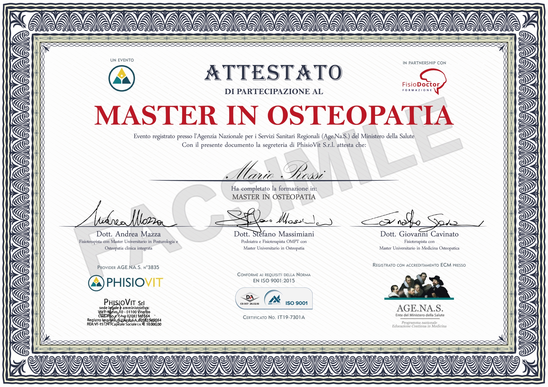 R.: Ogni discente sarà valutato durante il percorso del Master. Tali prove saranno indispensabili per ottenere l'attestazione dei crediti ECM. Alla fine dell'intero percorso si otterrà l'attestato di Master in Osteopatia.