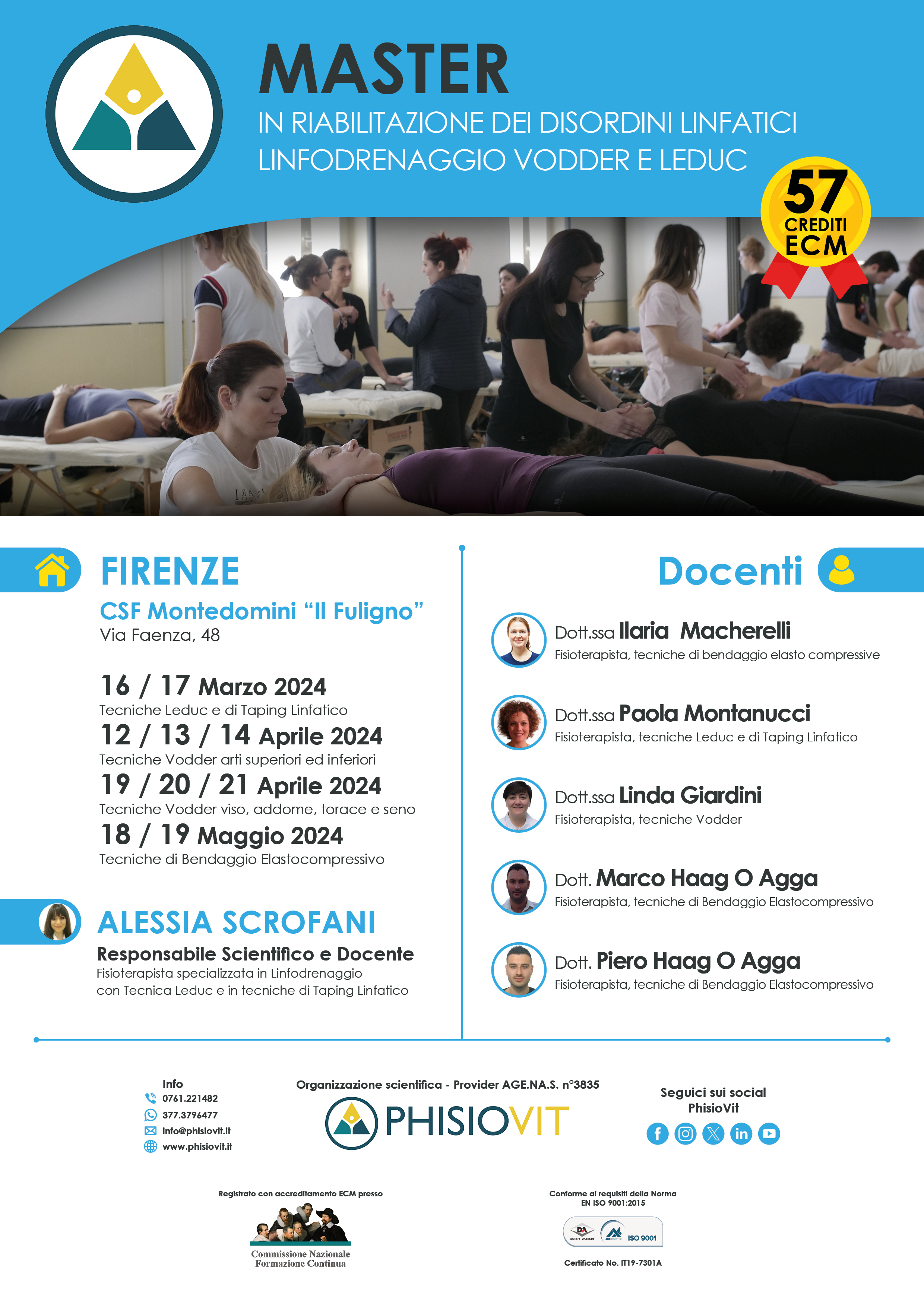 Il Master in Riabilitazione dei Disordini Linfatici - Linfodrenaggio Vodder e Leduc è strutturato per formare il discente sullo studio anatomico, clinico, diagnostico e riabilitativo delle patologie linfatiche grazie all'apprendimento dei protocolli terapeutici secondo le più recenti metodologie di lavoro e per mezzo delle differenti metodiche associate: