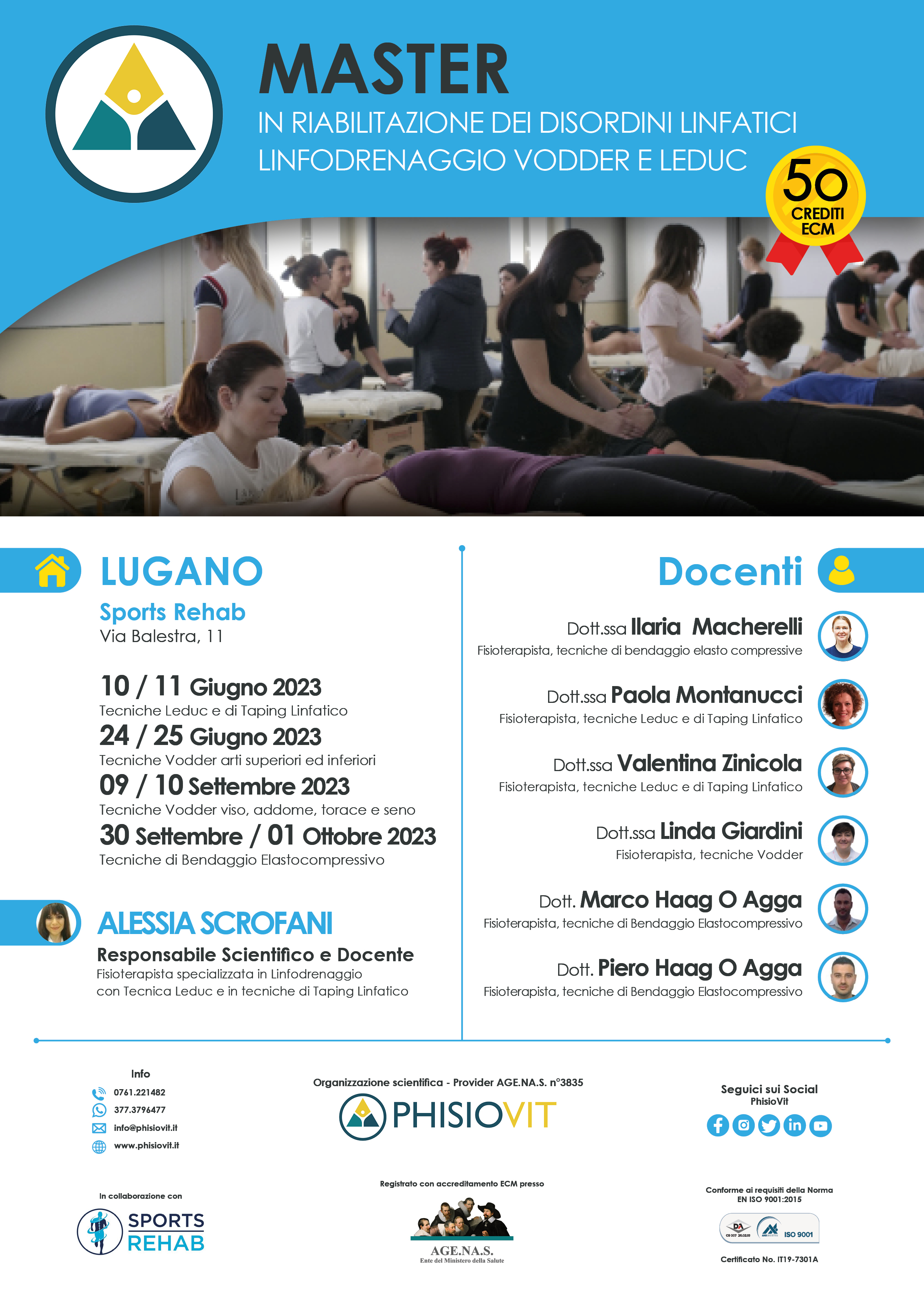 Il Master in Riabilitazione dei Disordini Linfatici - Linfodrenaggio Vodder e Leduc è strutturato per formare il discente sullo studio anatomico, clinico, diagnostico e riabilitativo delle patologie linfatiche grazie all'apprendimento dei protocolli terapeutici secondo le più recenti metodologie di lavoro e per mezzo delle differenti metodiche associate: