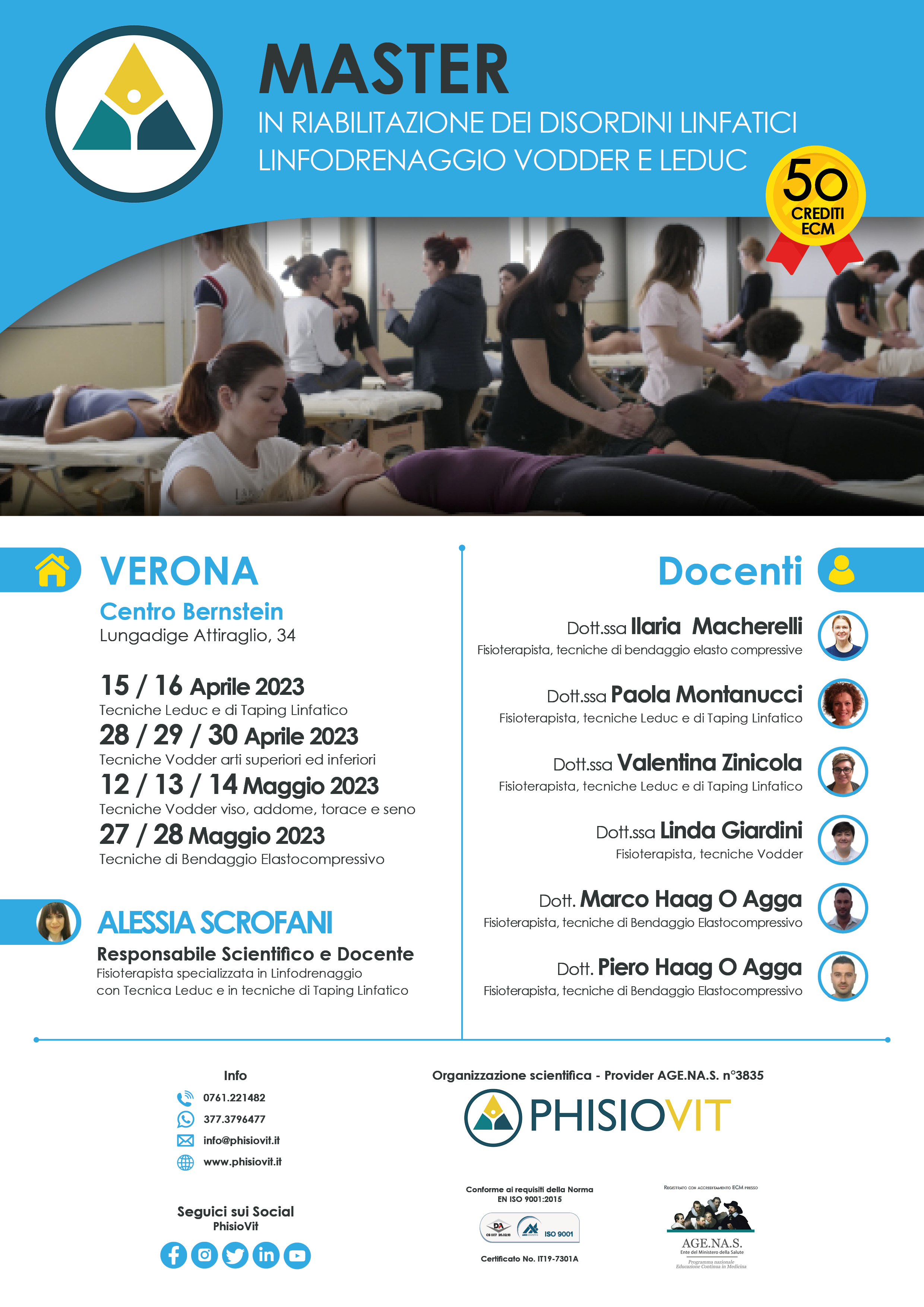 Il Master garantisce un'alta specializzazione in tutta la patologia linfatica, tale da consentire al professionista sanitario la gestione di ogni dinamica della riabilitazione ad essa associata: il discente infatti, al termine del percorso di studi, sarà in grado di avere tra le mani tutti i mezzi per trattare tali patologie, siano essi quelli di comprendere la cartella clinica dello specialista o di applicare i tre aspetti chiave delle linee guida per la malattia linfatica come il drenaggio linfatico manuale, il bendaggio elastocompressivo e l'esercizio terapeutico. Il cardine del progetto didattico è quello di dare particolare enfasi agli aspetti pratici riguardanti sia il drenaggio linfatico manuale con tecnica Vodder e Leduc che il bendaggio funzionale elastocompressivo che il taping linfatico. Non di secondaria importanza ciò che la responsabile scientifica del Master, Dott.ssa Alessia Scrofani, ha voluto inserire nel programma finale, ovvero tutto l'insieme di quelle sindromi linfatiche e compressive che investono lo stretto toracico superiore. Da ultimo vengono forniti tutti gli strumenti per essere in grado di bendare coi moderni approcci del taping linfatico, il discente sarà anche in grado di comprendere i mezzi diagnostici oggi usati per differenziare la malattia venosa da quella linfatica grazie al prezioso contributo scientifico e culturale offerto dai tre docenti titolari degli insegnamenti. Un mezzo essenziale quindi questo Master per specializzarsi nel mondo delle linfopatie e possedere tutti i mezzi per gestire il paziente con malattia linfatica, impostando sin dall'inizio, in collaborazione con l'équipe sanitaria, un lavoro pratico ed efficace, ripetibile ed efficiente. Questo Master può davvero dare al fisioterapista o al medico che vuole specializzarsi in tale ambito quel quid in più, orientandolo con sicurezza nella gestione delle patologie di carattere linfatico.
