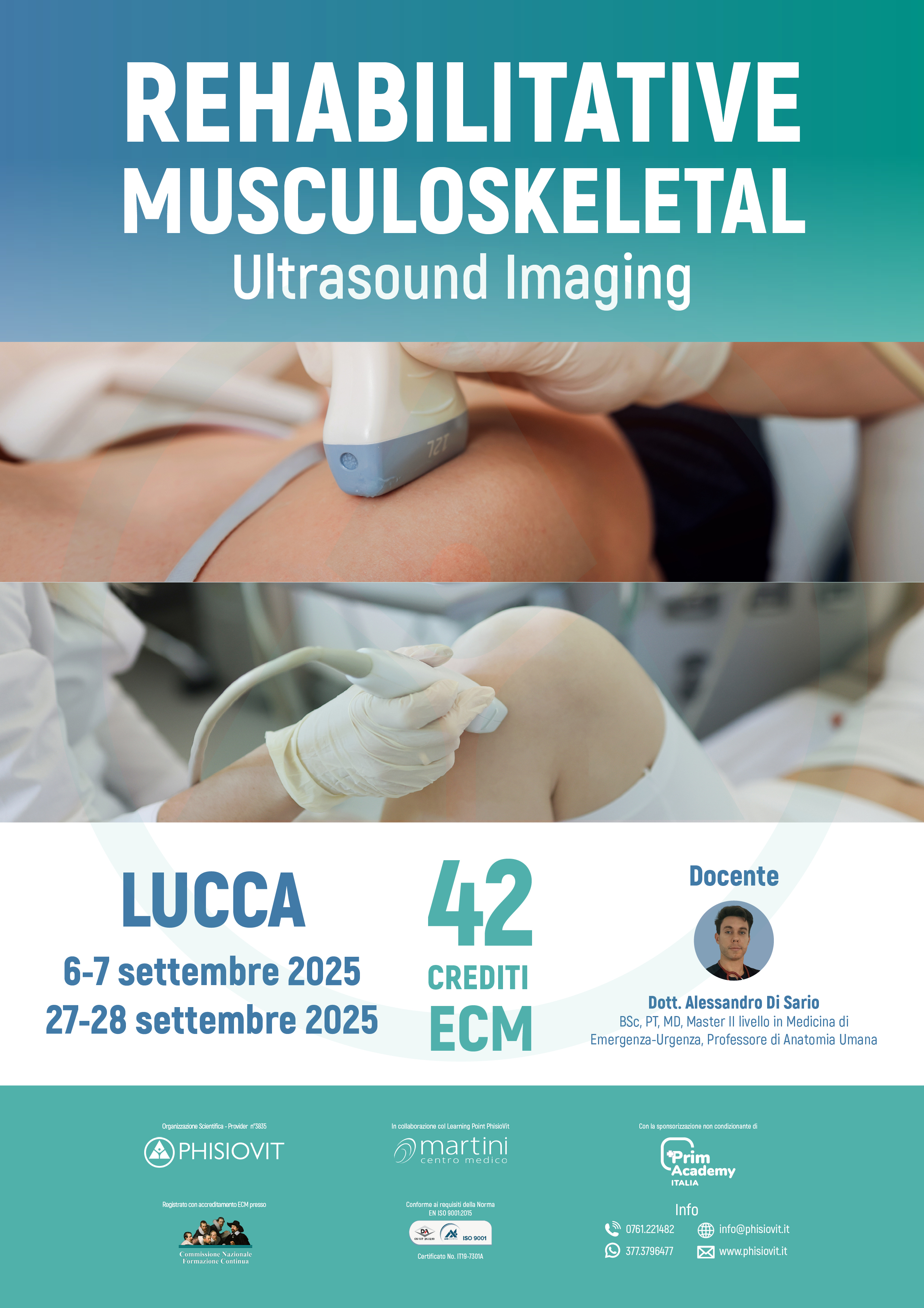 • Lower Limb Musculoskeletal Ultrasound Imaging, 21 crediti ECM, Lucca, 27-28 settembre 2025