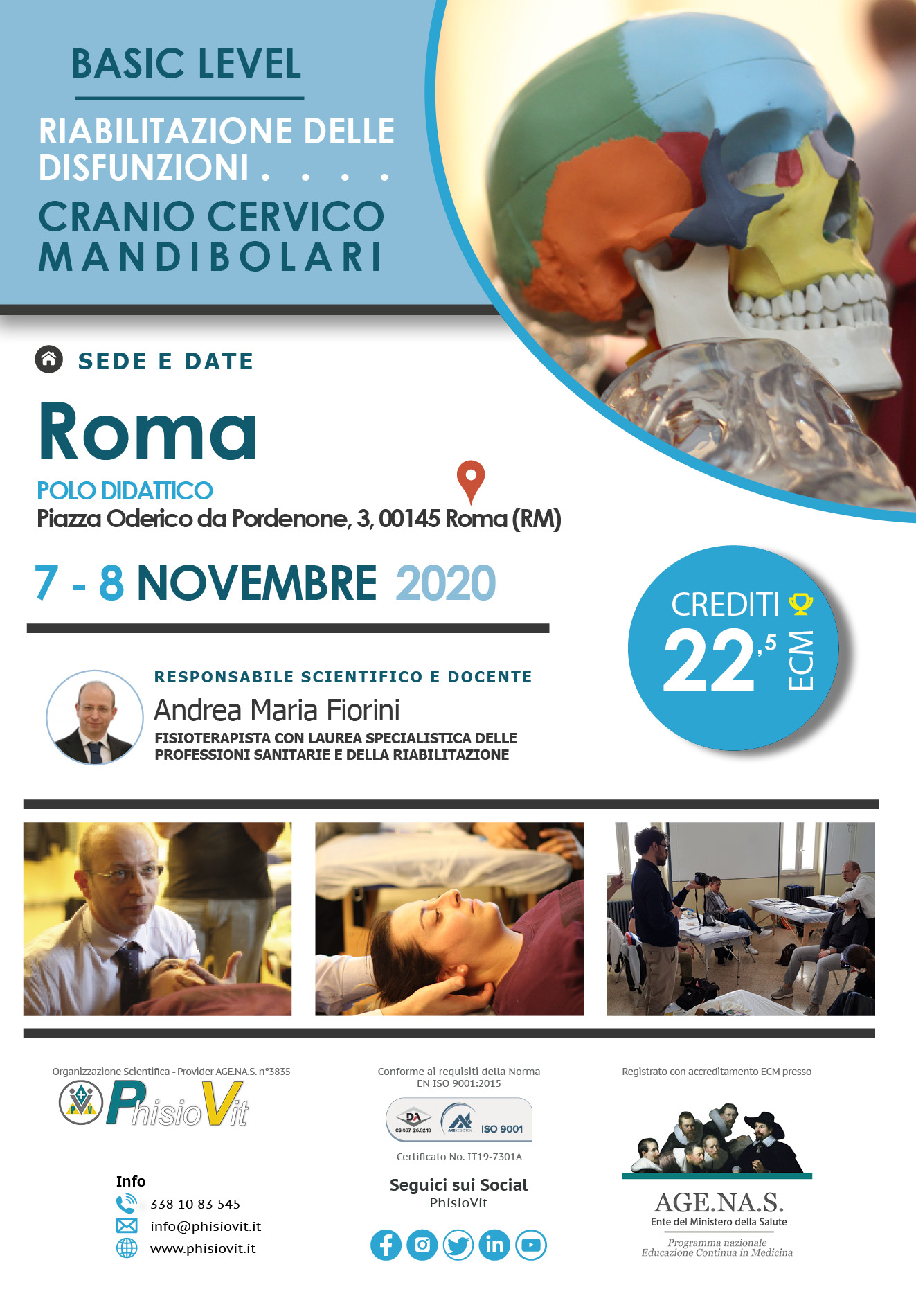 Questo corso è stato accuratamente progettato per affrontare tutti questi temi e si prefigge di mostrare quali sono i possibili quadri clinici che si possono presentare, l'importanza della collaborazione tra varie figure specialistiche quali fisioterapisti, odontoiatri, gnatologi, fisiatri, chirurghi maxillo facciali, otorinolaringoiatri e logopedisti ed il trattamento fisioterapico in fase acuta, sub-acuta e cronica, il tutto supportato da letteratura scientifica. Nelle oltre dieci ore riservate alle sessioni pratiche, vengono valutati e trattati i vari distretti del complesso cranio cervico mandibolare, nonché i disturbi della postura e le varie complicanze associate a queste disfunzioni attingendo dalle più attuali tecniche fisioterapiche, osteopatiche e manipolative, scegliendo le più adatte al trattamento di questa singolare disfunzione sempre più diffusa ed ancora poco conosciuta.