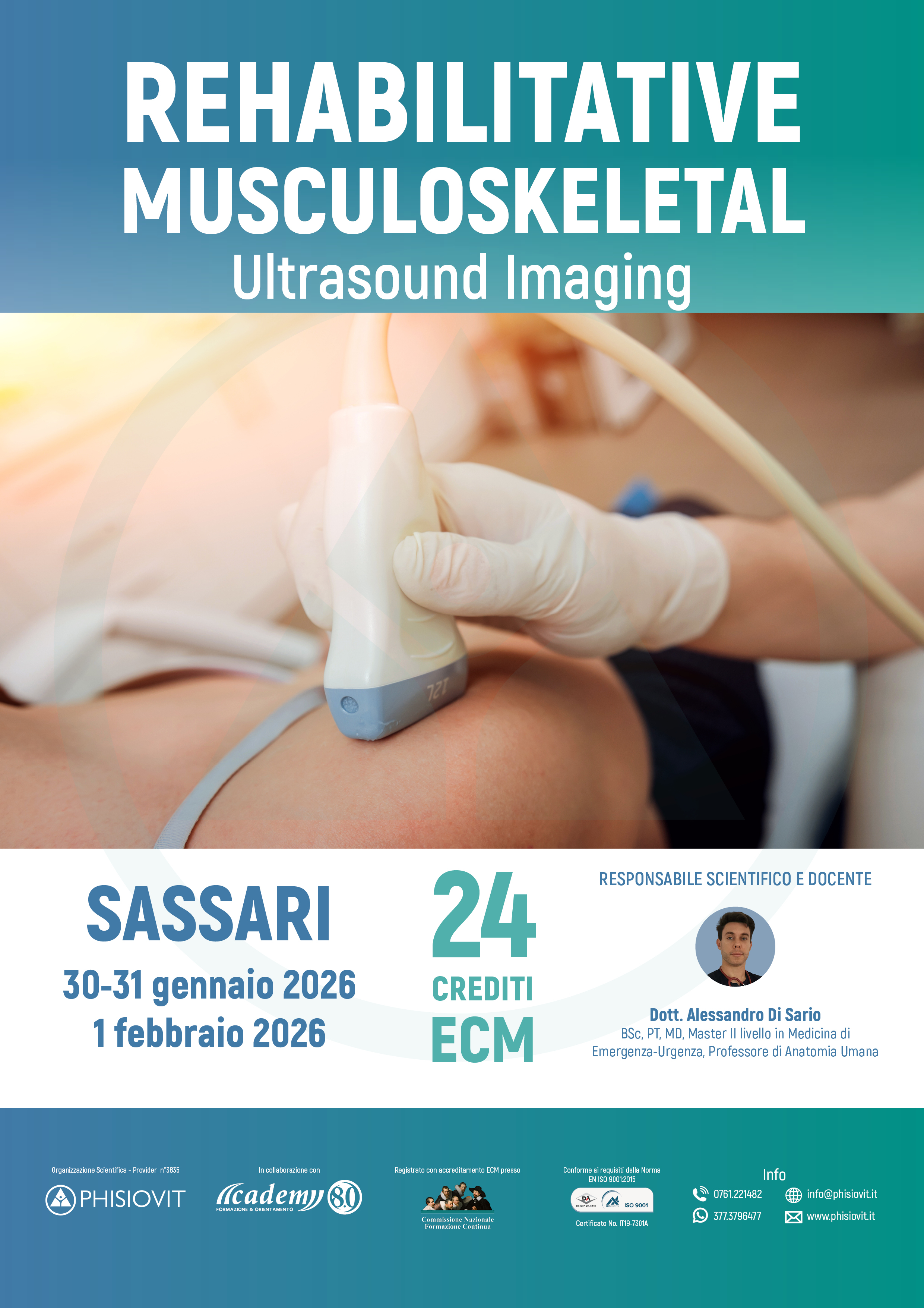 Rehabilitative Musculoskeletal Ultrasound Imaging è un corso innovativo rivolto a fisioterapisti e professionisti della riabilitazione che desiderano integrare l'ecografia muscoloscheletrica nella pratica clinica quotidiana. L'evoluzione della figura del fisioterapista, sempre più orientata all'evidenza scientifica, richiede strumenti affidabili e specifici per ottimizzare la valutazione clinica e personalizzare i trattamenti. Il corso offre un approccio pratico e interattivo all'uso dell'ecografia muscoloscheletrica per l'analisi delle strutture osteo-articolari e muscolo-tendinee degli arti superiori e inferiori. I partecipanti avranno l'opportunità di apprendere in un contesto altamente operativo, alternandosi nei ruoli di operatori e pazienti, con sessioni pratiche dedicate a spalla, gomito, polso, anca, ginocchio e caviglia. L'ecografia, grazie alla sua capacità di fornire immagini di alta risoluzione in tempo reale, rappresenta un valore aggiunto significativo nella pratica riabilitativa, migliorando l'accuratezza delle valutazioni, il monitoraggio dei progressi terapeutici e la comunicazione con i pazienti. Il programma include anche sessioni specifiche dedicate allo screening per referral, ovvero all'identificazione di segni e sintomi che potrebbero indicare patologie non muscoloscheletriche o condizioni che richiedono un approfondimento medico specialistico. Particolare attenzione sarà riservata al riconoscimento dei segni ecografici di sospetto in caso di trombosi venosa profonda (TVP), al fine di fornire ai partecipanti le competenze necessarie per individuare precocemente tali condizioni e garantire un tempestivo invio a valutazione specialistica. Questo approccio è fondamentale per migliorare l'appropriatezza dell'intervento riabilitativo, evitare ritardi diagnostici, garantire la sicurezza del paziente e aumentare l'efficacia del percorso terapeutico. Verranno illustrate le principali condizioni patologiche, i segni ecografici di sospetto e le competenze per riconoscere precocemente situazioni cliniche critiche. Il corso non ha l'obiettivo di formare i partecipanti alla diagnosi medica, ma di fornire strumenti per integrare efficacemente l'ecografia nella valutazione funzionale e riabilitativa, in stretta collaborazione con il team medico.