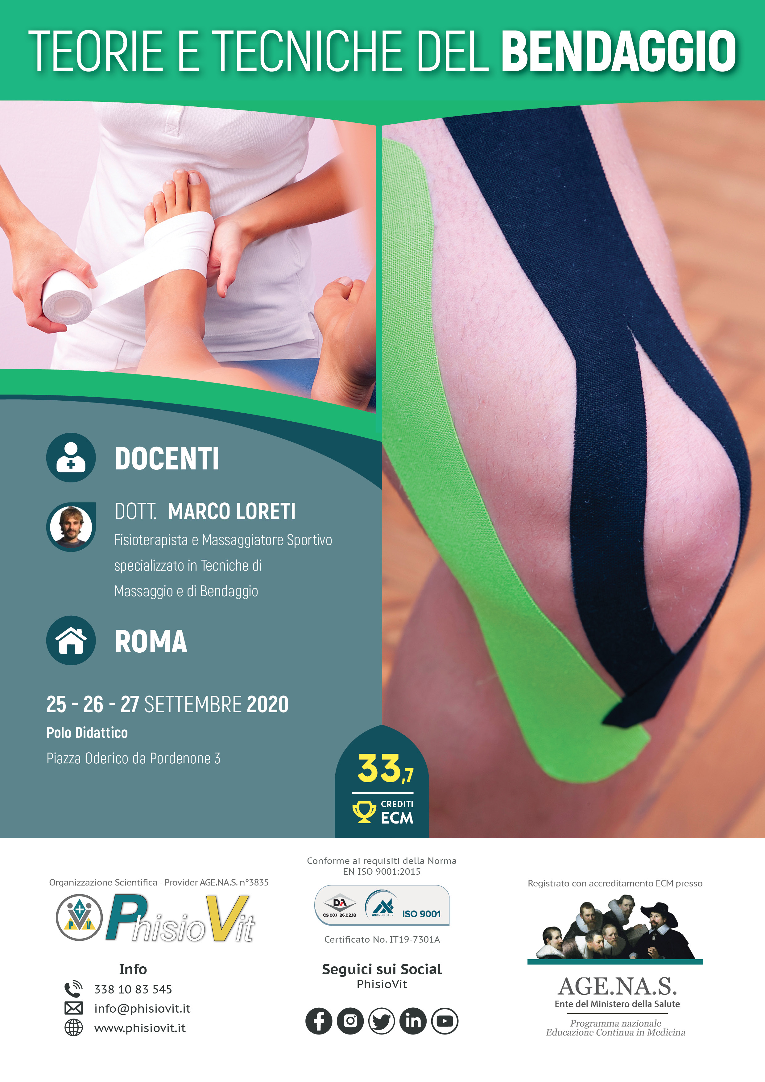 In questo corso si affrontano le basi teoriche, le principali tecniche, i confezionamenti pratici dei bendaggi e come applicarli alla varia casistica clinica. Il progetto didattico è strutturato prevalentemente attorno all'esecuzione pratica delle principali tecniche di bendaggio come la contenzione muscolare, il sostegno, la stabilizzazione articolare, lo scarico funzionale e il drenaggio. Il corso è orientato verso l'apprendimento di elementi di anatomia applicata e biomeccanica funzionale degli arti, di valutazioni cliniche di base e di confezionamento dei principali bendaggi, prendendone in esame indicazioni e controindicazioni. Il discente non acquisisce solo competenze in materia di applicazione delle tecniche riabilitative inerenti i taping, ma apprende soprattutto abilità pratiche esercitandosi nei laboratori didattici che costituiscono la componente prevalente del corso ed il vero cuore di questo programma formativo.