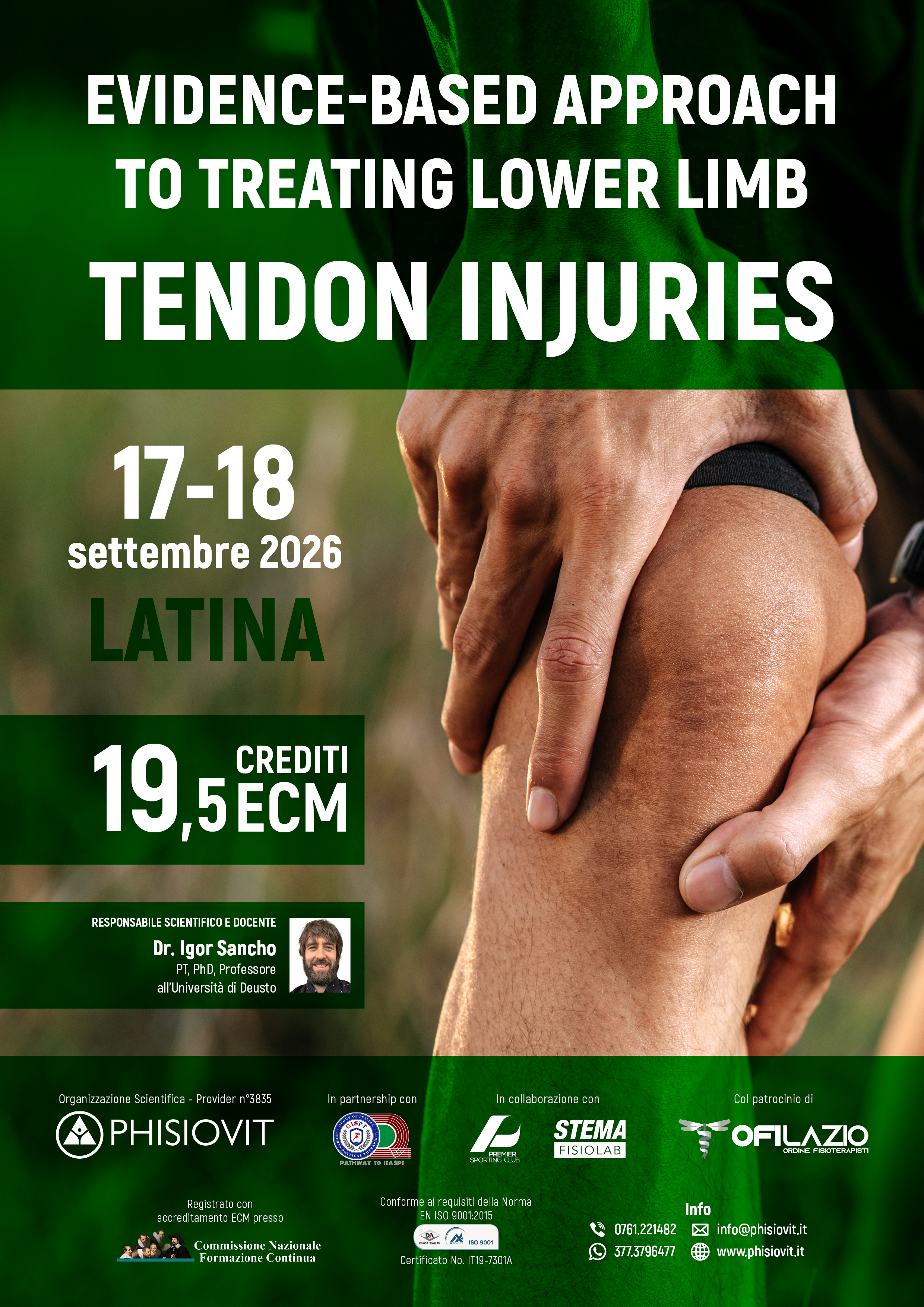 • Early Booking sul corso in presenza "Evidence-Based Approach to Treating Lower Limb Tendon Injuries" edizione di Latina 2026