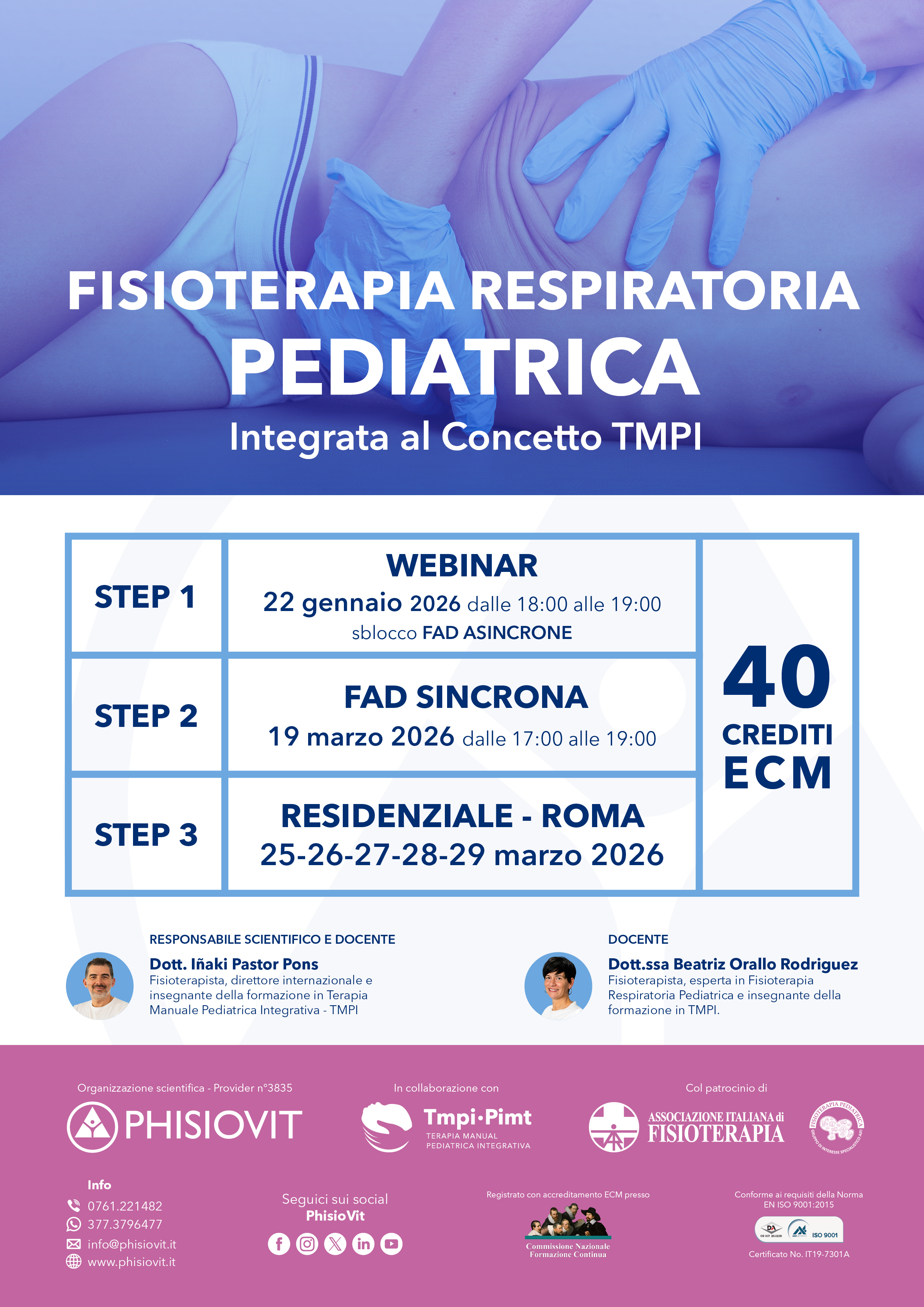 • Early Booking sul corso "Fisioterapia Respiratoria Pediatrica Integrata al Concetto TMPI" edizione di Roma 2026