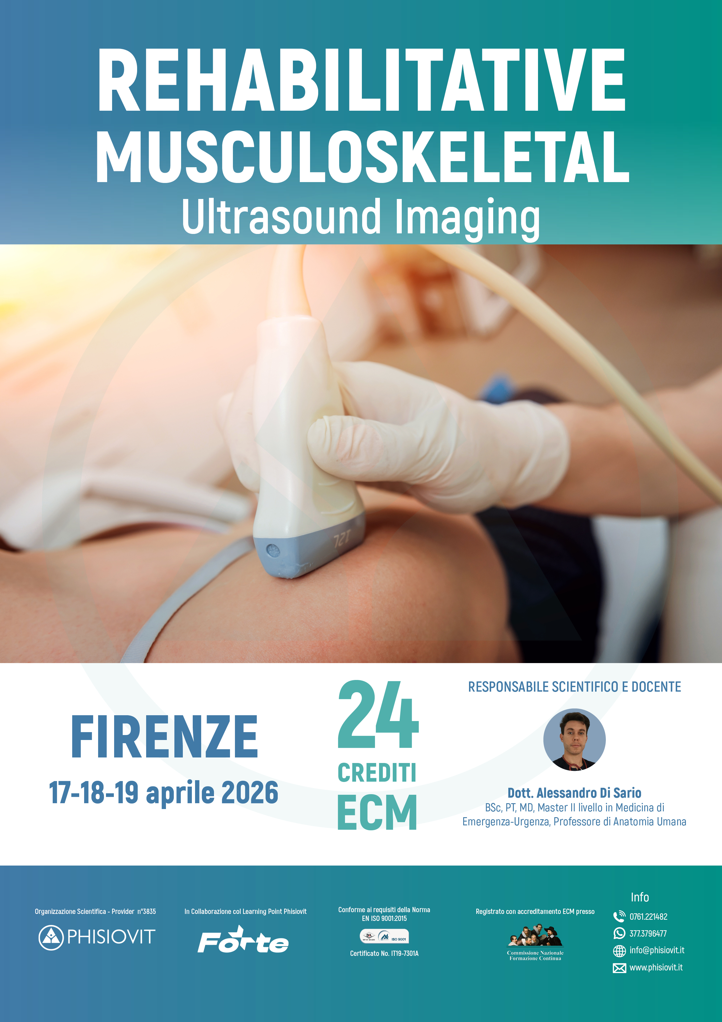 Rehabilitative Musculoskeletal Ultrasound Imaging è un corso innovativo rivolto a fisioterapisti e professionisti della riabilitazione che desiderano integrare l'ecografia muscoloscheletrica nella pratica clinica quotidiana. L'evoluzione della figura del fisioterapista, sempre più orientata all'evidenza scientifica, richiede strumenti affidabili e specifici per ottimizzare la valutazione clinica e personalizzare i trattamenti. Il corso offre un approccio pratico e interattivo all'uso dell'ecografia muscoloscheletrica per l'analisi delle strutture osteo-articolari e muscolo-tendinee degli arti superiori e inferiori. I partecipanti avranno l'opportunità di apprendere in un contesto altamente operativo, alternandosi nei ruoli di operatori e pazienti, con sessioni pratiche dedicate a spalla, gomito, polso, anca, ginocchio e caviglia. L'ecografia, grazie alla sua capacità di fornire immagini di alta risoluzione in tempo reale, rappresenta un valore aggiunto significativo nella pratica riabilitativa, migliorando l'accuratezza delle valutazioni, il monitoraggio dei progressi terapeutici e la comunicazione con i pazienti. Il programma include anche sessioni specifiche dedicate allo screening per referral, ovvero all'identificazione di segni e sintomi che potrebbero indicare patologie non muscoloscheletriche o condizioni che richiedono un approfondimento medico specialistico. Particolare attenzione sarà riservata al riconoscimento dei segni ecografici di sospetto in caso di trombosi venosa profonda (TVP), al fine di fornire ai partecipanti le competenze necessarie per individuare precocemente tali condizioni e garantire un tempestivo invio a valutazione specialistica. Questo approccio è fondamentale per migliorare l'appropriatezza dell'intervento riabilitativo, evitare ritardi diagnostici, garantire la sicurezza del paziente e aumentare l'efficacia del percorso terapeutico. Verranno illustrate le principali condizioni patologiche, i segni ecografici di sospetto e le competenze per riconoscere precocemente situazioni cliniche critiche. Il corso non ha l'obiettivo di formare i partecipanti alla diagnosi medica, ma di fornire strumenti per integrare efficacemente l'ecografia nella valutazione funzionale e riabilitativa, in stretta collaborazione con il team medico.