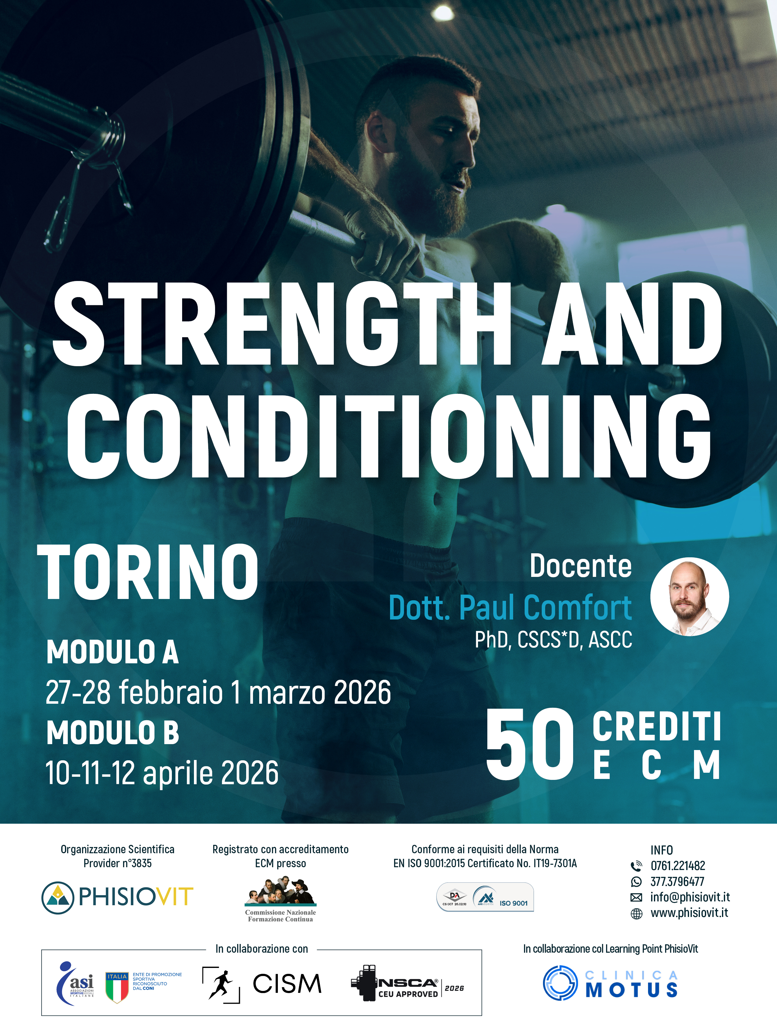Il corso Strength and Conditioning è composto da due moduli della durata di tre giorni ciascuno, per un totale di 50 crediti ECM: