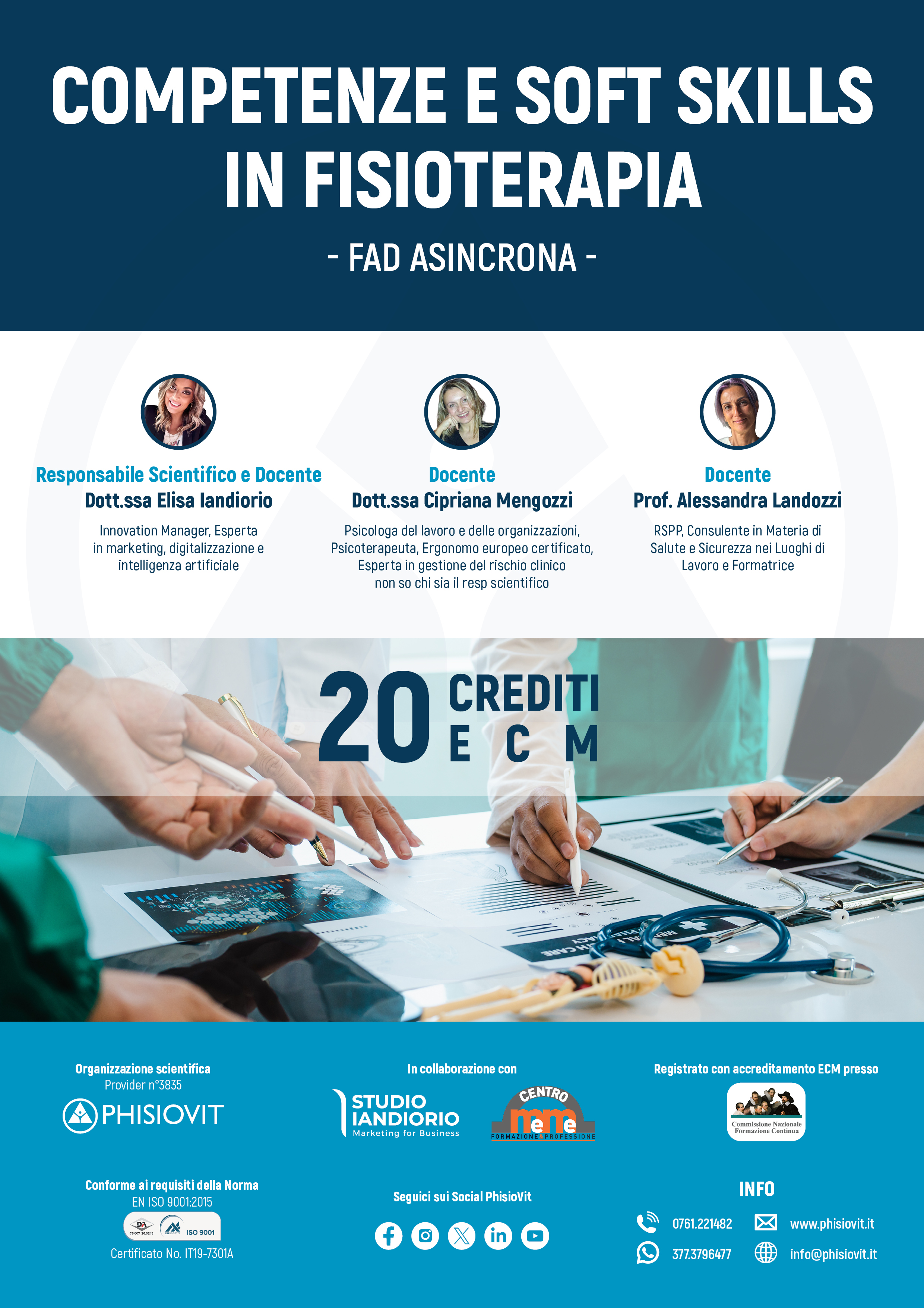 Questo progetto formativo nasce dall'incontro tra l'esperienza di PhisioVit, ente accreditato a livello nazionale da Age.Na.S. per la formazione continua (ECM - Educazione Continua in Medicina), e la visione di FNOFI - Federazione Nazionale degli Ordini della Professione Sanitaria dei Fisioterapisti e delle sue articolazioni territoriali (OFI - Ordini della Professione Sanitaria di Fisioterapista), sin dal principio della loro storia impegnate nella promozione della crescita professionale dei fisioterapisti. L'iniziativa intende valorizzare il ruolo del fisioterapista nel sistema sanitario attraverso un’offerta innovativa, che integra le competenze tecnico-scientifiche con quelle trasversali, oggi indispensabili per affrontare le evoluzione del sistema sanitario contemporaneo.