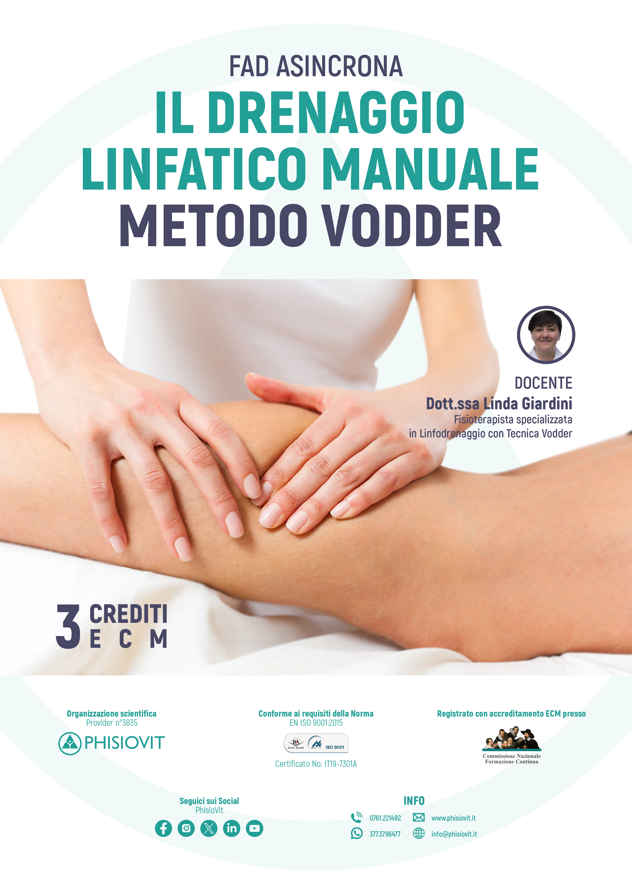 Questo corso in distance learning è strutturato nei minimi dettagli per formare il discente sul DLM metodo Vodder attraverso gli effetti, le indicazioni e le controindicazioni. Durante le lezioni a distanza lo stesso discente potrà apprendere il concetto di terapia decongestiva complessa, definito dalle linee guida della European Society of Lymphology (ESL) come il trattamento di eccellenza per la cura dei linfedemi, e infine conoscere e fare propri i principi teorici e pratici attraverso alcuni brevi video delle manovre base del DLM. Il corso è propedeutico al Master in Riabilitazione dei Disordini Linfatici - Linfodrenaggio Vodder e Leduc.