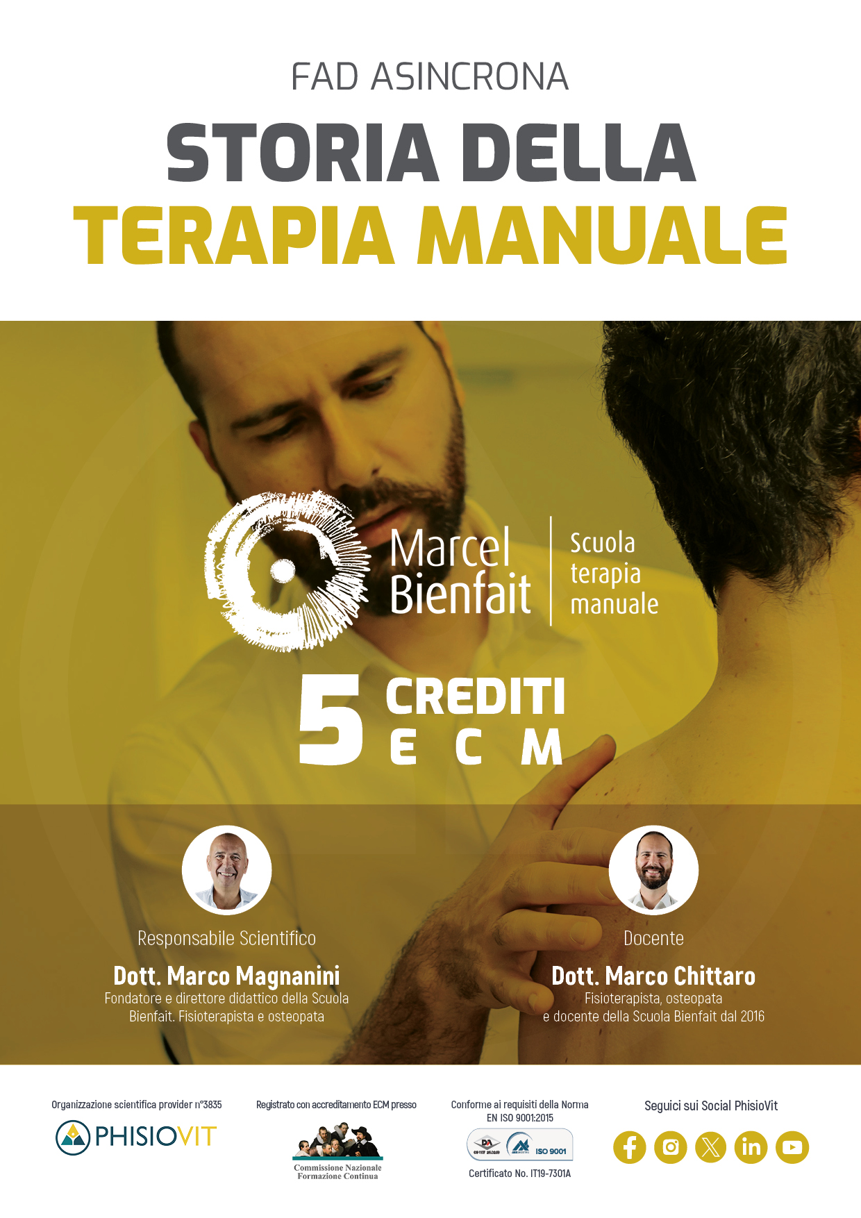 Il Dott. Marco Chittaro, fisioterapista, osteopata e docente presso la Scuola di Terapia Manuale Marcel Bienfait dal 2016. Fondata nel 2010, la Scuola di Terapia Manuale Marcel Bienfait è l'unico ente ufficialmente autorizzato a insegnare il Metodo Bienfait, un modello di pensiero clinico basato sull'osservazione, sull'ascolto e sulla centralità della persona. Per approfondire l'offerta formativa e i percorsi disponibili è possibile consultare la landing page dedicata ai corsi della Scuola di Terapia Manuale Marcel Bienfait.